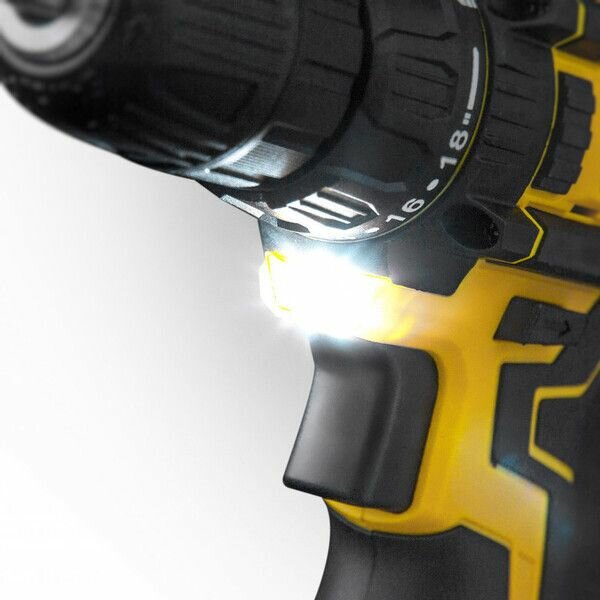 с прорезиненной ручкой для надежного хвата. Клипса на корпусе дрели позволяет подвесить устройство на поясе. Для лучшей видимости рабочей зоны в устройство встроена светодиодная подсветка.