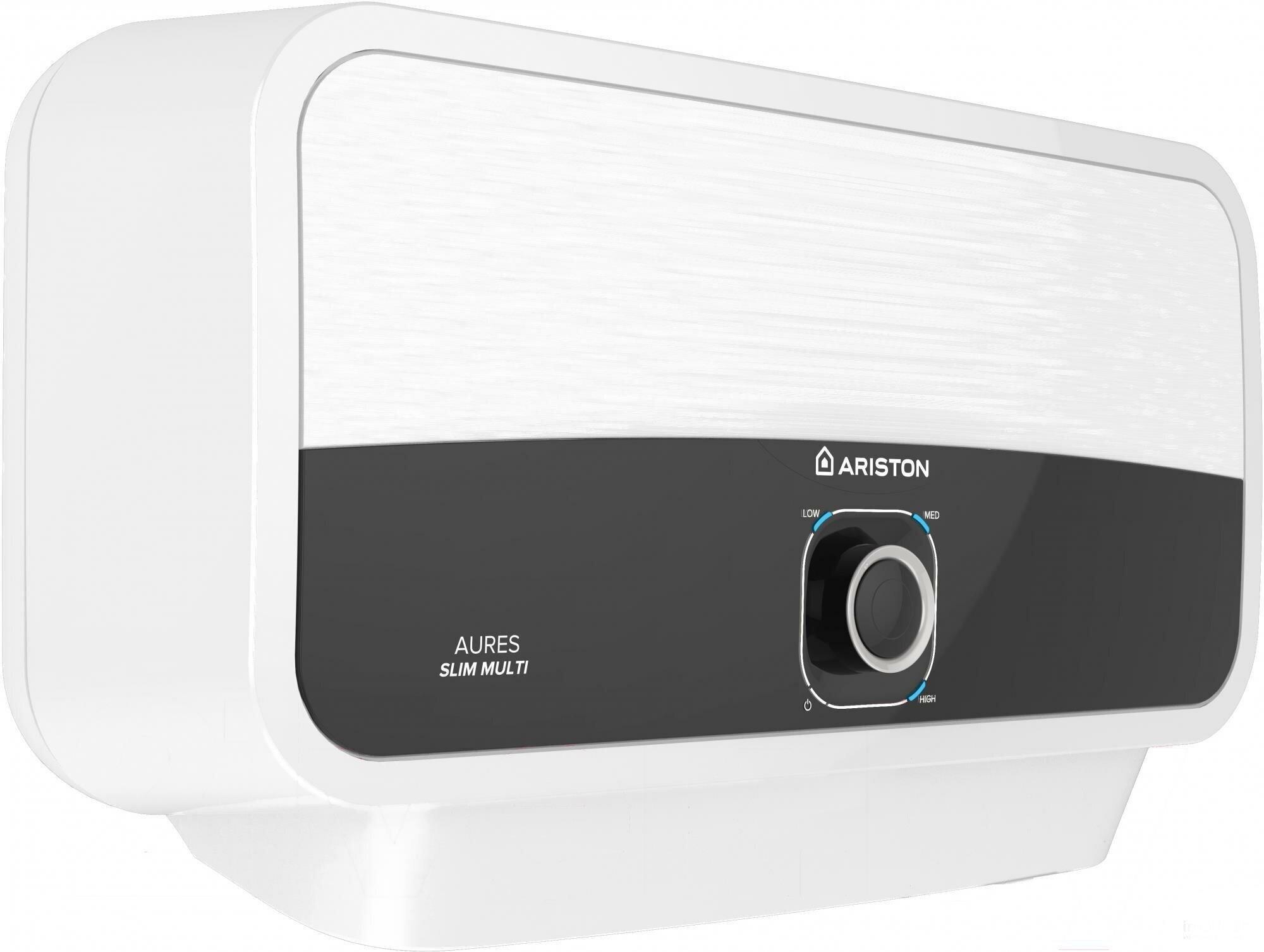 Водонагреватель Ariston Aures M 7.7 7.7кВт, способ нагрева электрический, максимальная температура 55 градусов, механическое управление, горизонтальная установка (3195213)