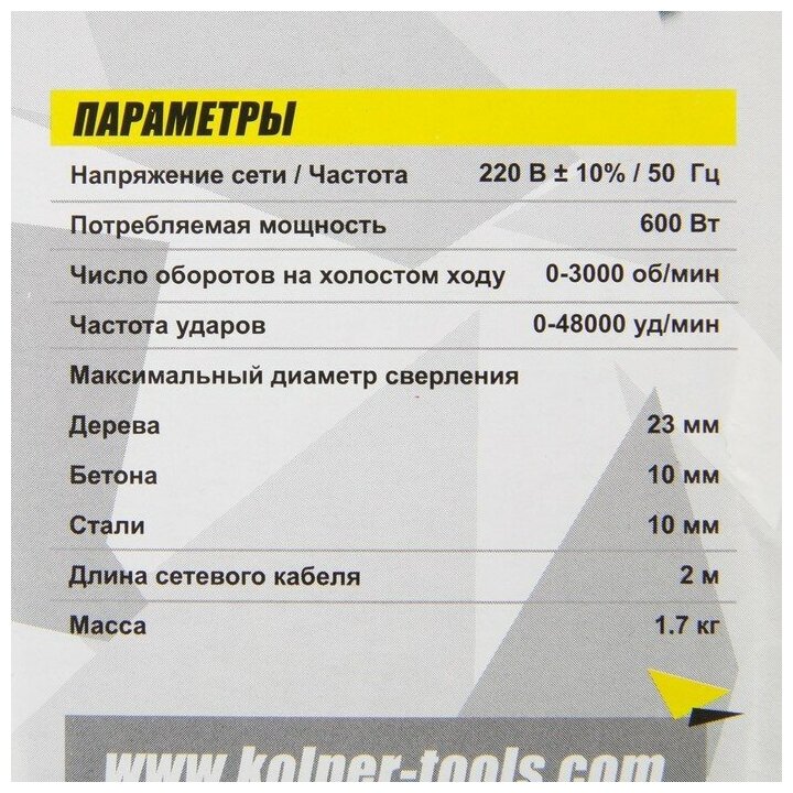 Компактная ударная дрель Kolner KID весит .