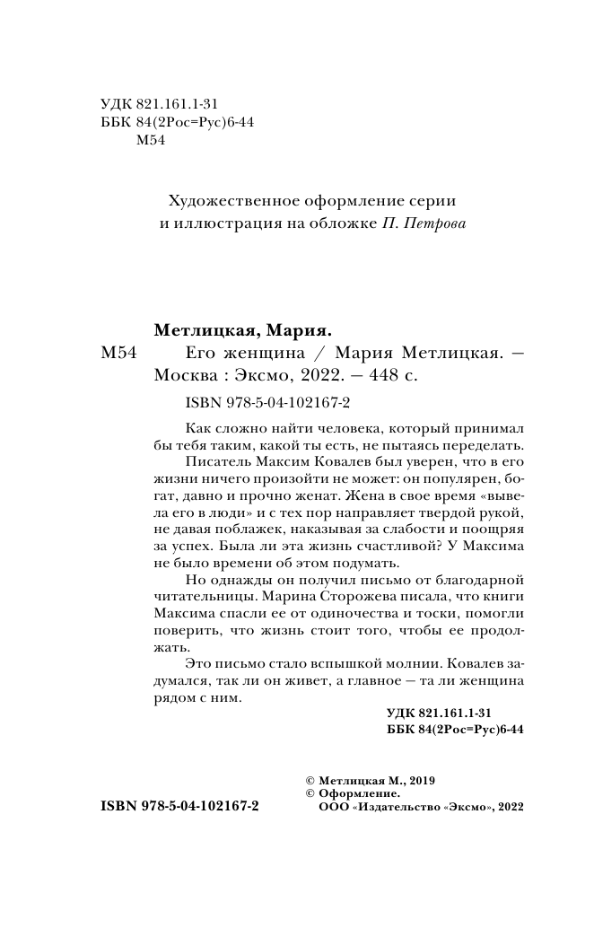 Книга: Его женщина (Метлицкая Мария Робертовна); ООО "Издательство "Эксмо", 2019