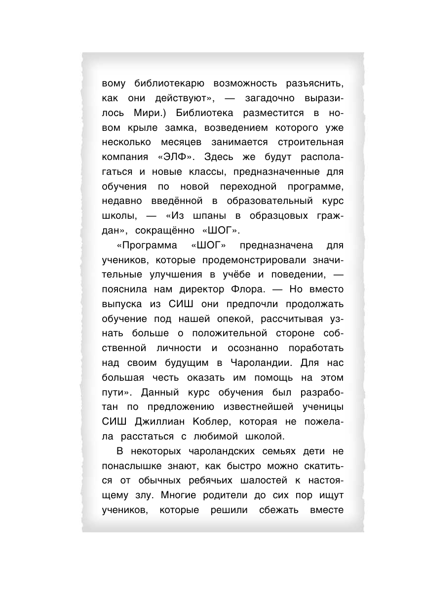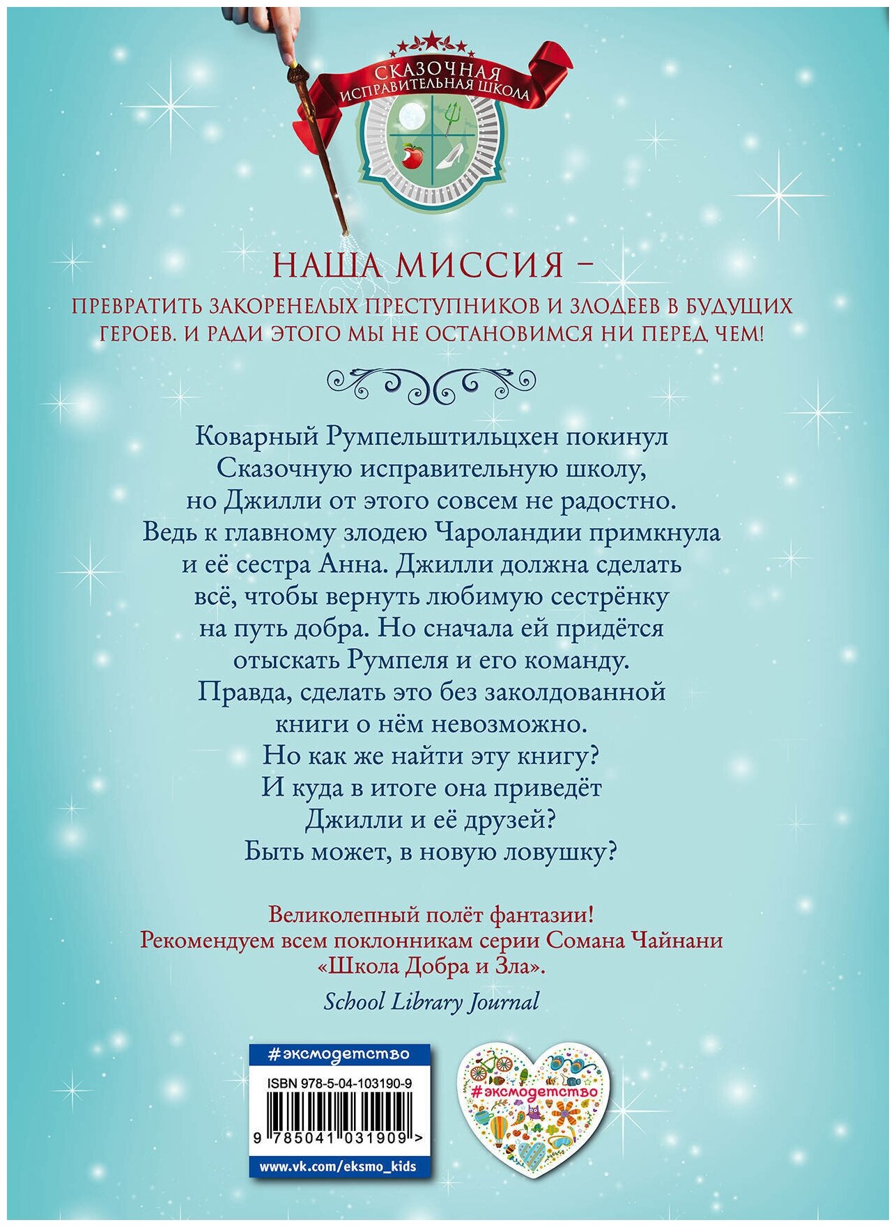 После того, как Румпельштильцхен покинул Сказочную исправительную школу, многие выдохнули с облегчением. Но только не Джилли! Ведь к главному преступнику Чароландии примкнула её любимая сестра Анна. Чтобы вернуть сестрёнку на путь добра, девочка должна отыскать Румпеля и его команду. Но для этого ей сначала придётся изучить библиотеку школы и найти заколдованную книгу, без которой невозможно выйти на след злодеев. Однако не всем книгам можно доверять - некоторые ведут прямо в ловушку...