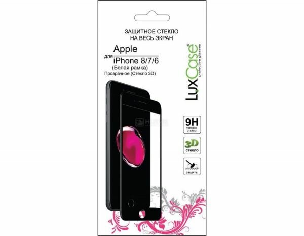 Защитное стекло LuxCase для iPhone 6, 6S, 7, 8, SE2020 , 3D, Полноклеевое, Белая рамка. Стекло 3D Full Glue - Полноклеевое - защитное стекло с прокрашенной объемной рамкой и клеевым слоем по всей поверхности. Данное стекло позволяет закрыть всю поверхность экрана на устройствах с большим изгибом. А качественное олеофобное покрытие предназначено для предотвращения появления отпечатков пальцев, следов и разводов. В комплект входят влажная и сухая салфетки и наклейка-пылеудалитель. Рекомендуем проверять стекла при получении.
