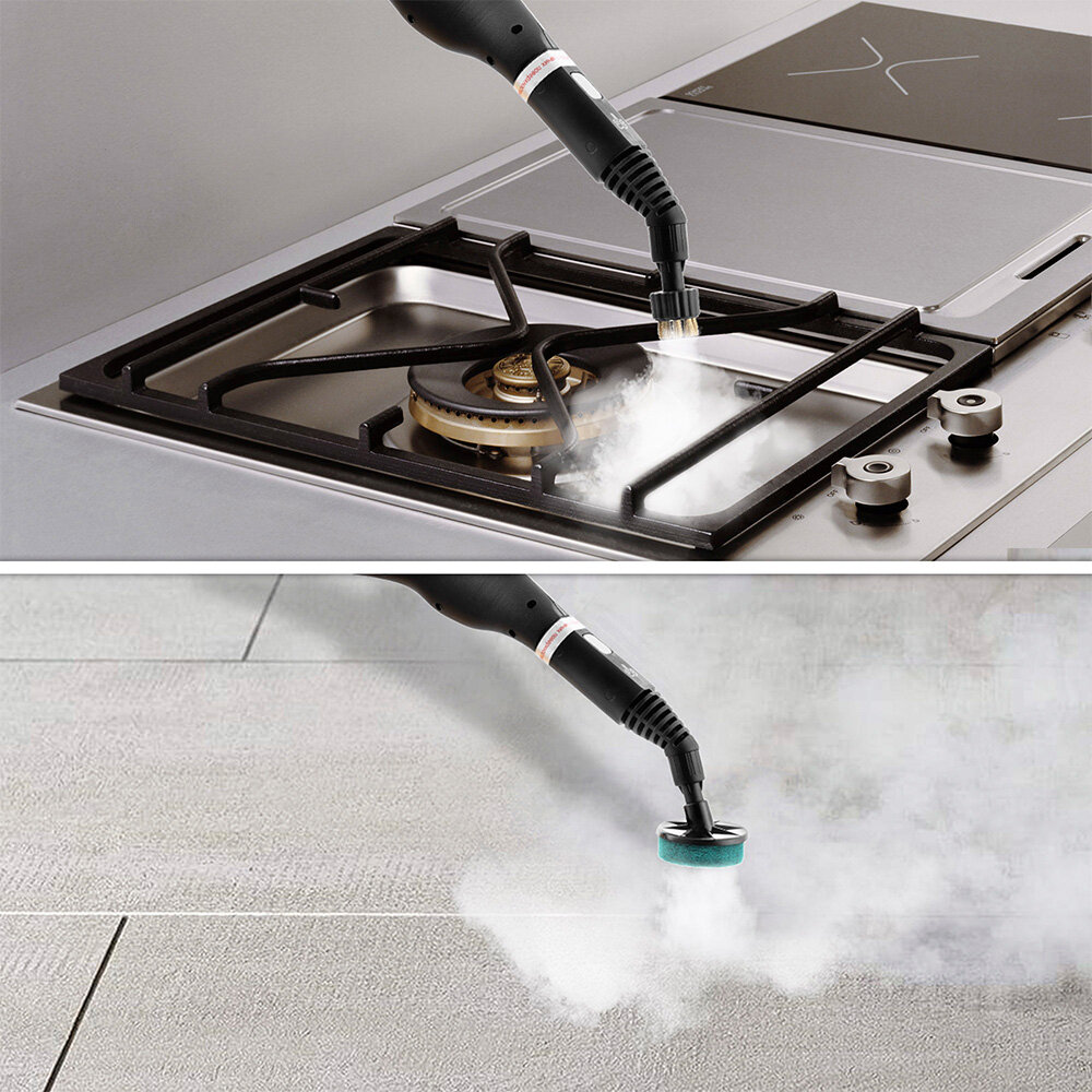 | Описание комплектации | 1 х Пароочиститель 1 х Струйная насадка 1 х Треугольная щетка 1 х Резиновый скребок 3 х Маленьких нейлоновых щетки 2 х Больших нейлоновых щетки 1 х Латунная щетка 1 х Щетка-скраб 1 х Ручка для переноски 1 х Щетка для пола 2 х Тряпки для пола 2 х Удлинительных трубки 1 х Стакан для воды 1 х Воронка 1 х Отвертка 1 х Руководство по эксплуатации |