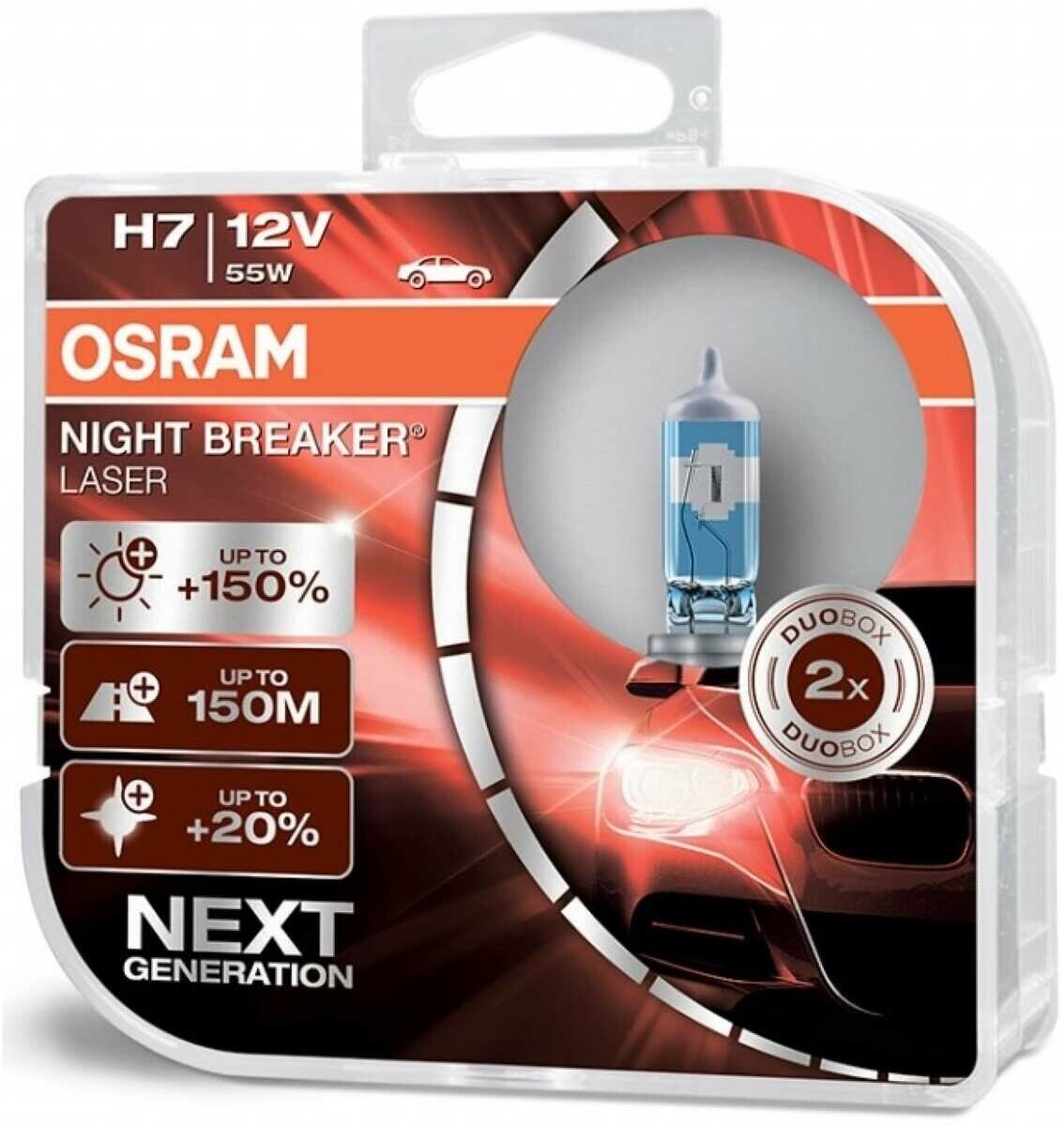 Встречайте новое поколение NIGHT BREAKER LASER – самой яркой галогенной автолампы OSRAM! Благодаря инновационным лазерным технологиям лампа обеспечивает до 150 процентов больше яркости, если сравнивать с минимальными установленными требованиями, а тщательно продуманная структура нити накала позволила добиться дополнительной светоотдачи.