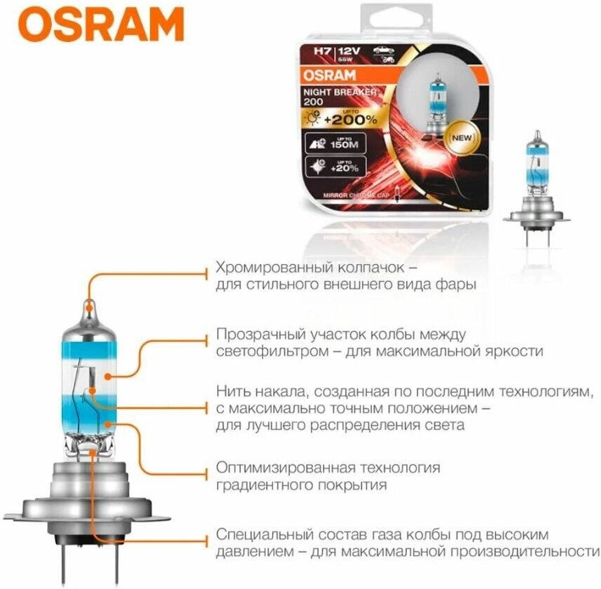 Модель: Лампа галогенная OSRAM H7 12 В 55 Вт NIGHT 2 шт