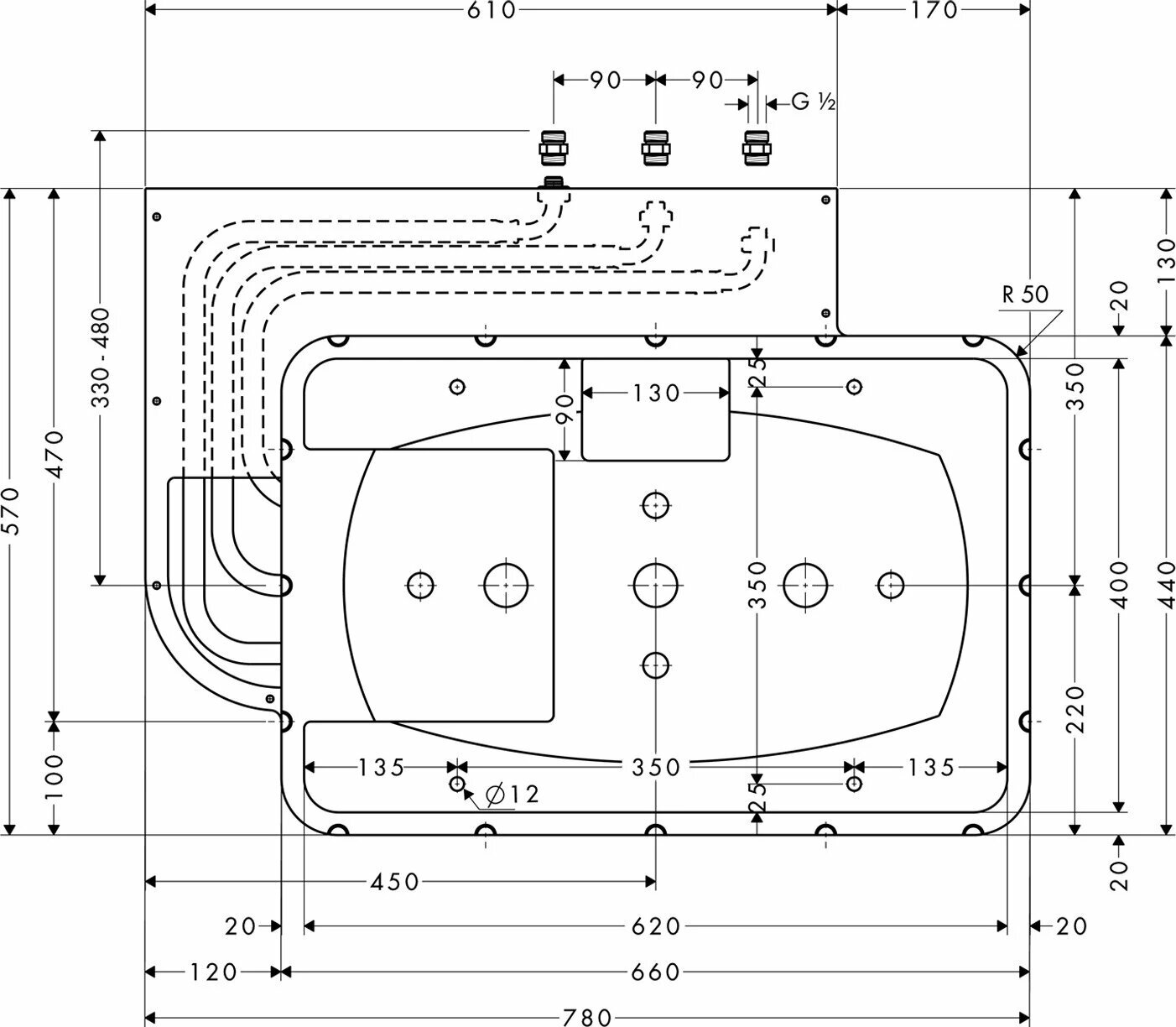 | Совместимость | для прямоугольного Hansgrohe Raindance Rainmaker 28414180 |