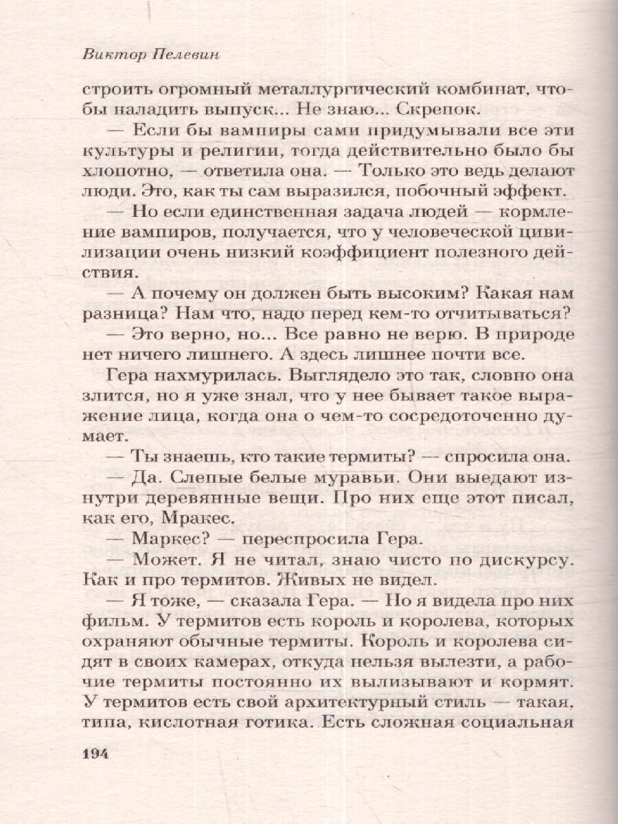 Виктор Пелевин. Его произведения становятся открытием для меня. Невероятные повести. Очень рада, что заказала книгу именно от этого издательства. книга достаточно лёгкая, не смотря на достаточно большое содержание. мне кажется, что шрифт мелковат, но в принципе читабельно. Текст хорошо пропечатан. обложка просто бомба. Спасибо.)