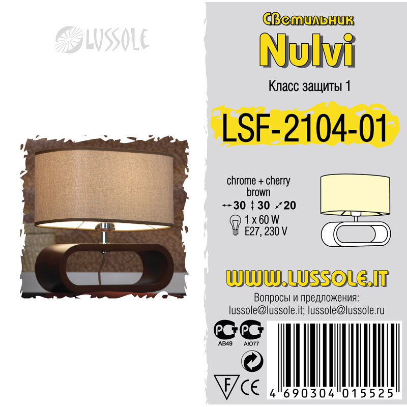 Настольная лампа Nulvi - продукт известной компании Lussole (Италия). Имеет максимальную мощность 60 Вт, освещает площадь до 3 кв. м. Отлично подойдет для таких мест, как спальня, кабинет. Впишется в интерьеры следующих стилей: модерн.