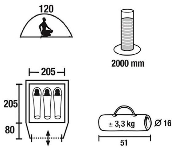 | Особенности | вентиляционные отверстия; внутренние карманы; антимоскитная сетка; штормовые оттяжки |