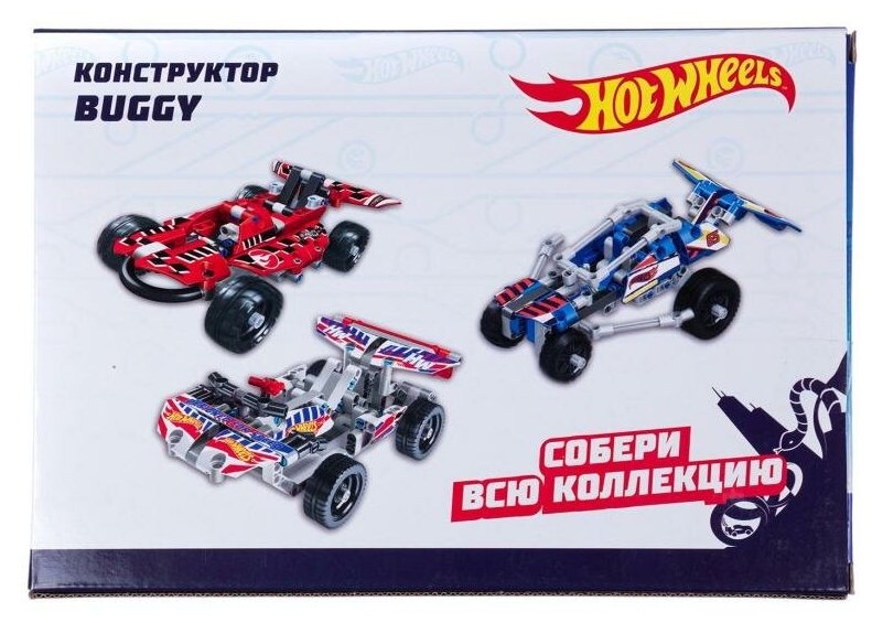 Конструктор Wheels Buggy - новинка, которая станет прекрасным времяпрепровождением для детей. Из качественных деталей можно собрать игрушечный болид. Части набора крепко соединяются между собой сразу в нескольких местах, что делает конструкцию более прочной. Оригинальные наклейки Hot Wheels делают модель яркой и необычной.