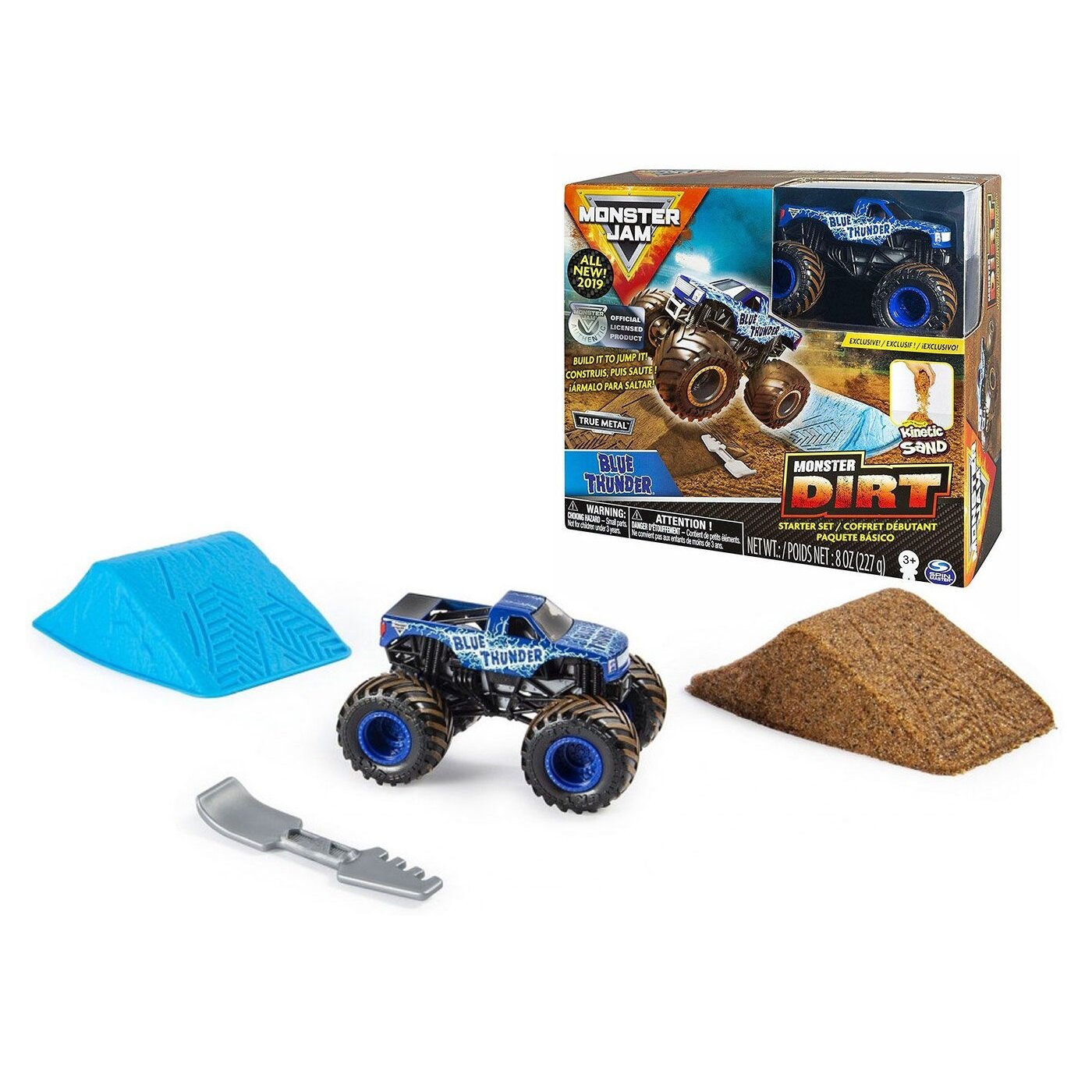 | Состав набора | машинка Monster Jam Blue Thunder, формочка для лепки, лопатка, кинетический песок Monster Dirt |