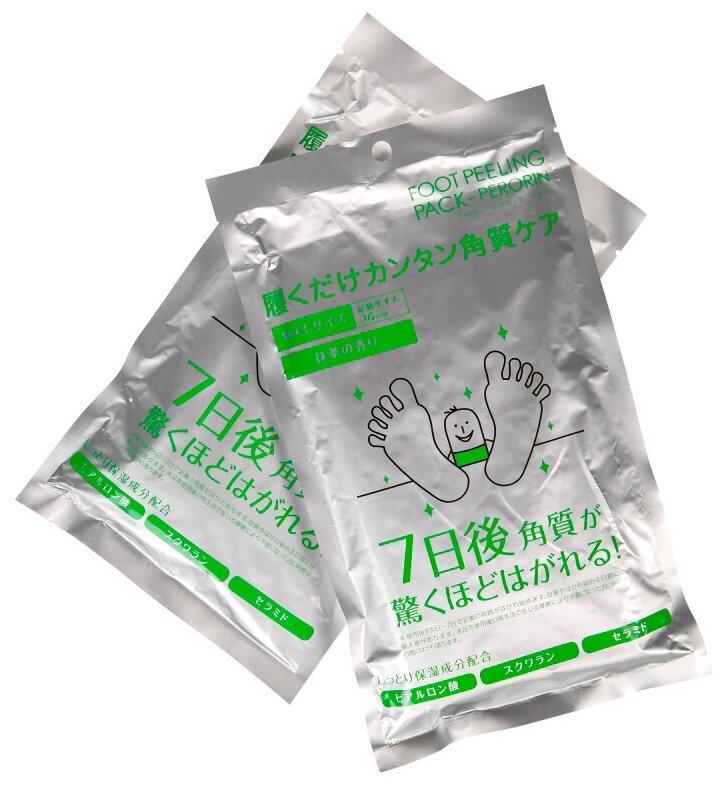 | Способ применения | Срежьте верхнюю часть пакета, достаньте носочки. Будьте осторожны - не разлейте жидкость, которая находится внутри носочков. Наденьте на стопы носочки, закрепите на ноге с помощью стикеров для фиксации и оставьте на один час. По истечении часа снимите носочки и помойте ноги в теплой воде. В течение 5-7 дней произойдет отшелушивание верхних плотных слоев кожи. Способ и время отшелушивания кожи могут меняться в зависимости от личных особенностей человека. |