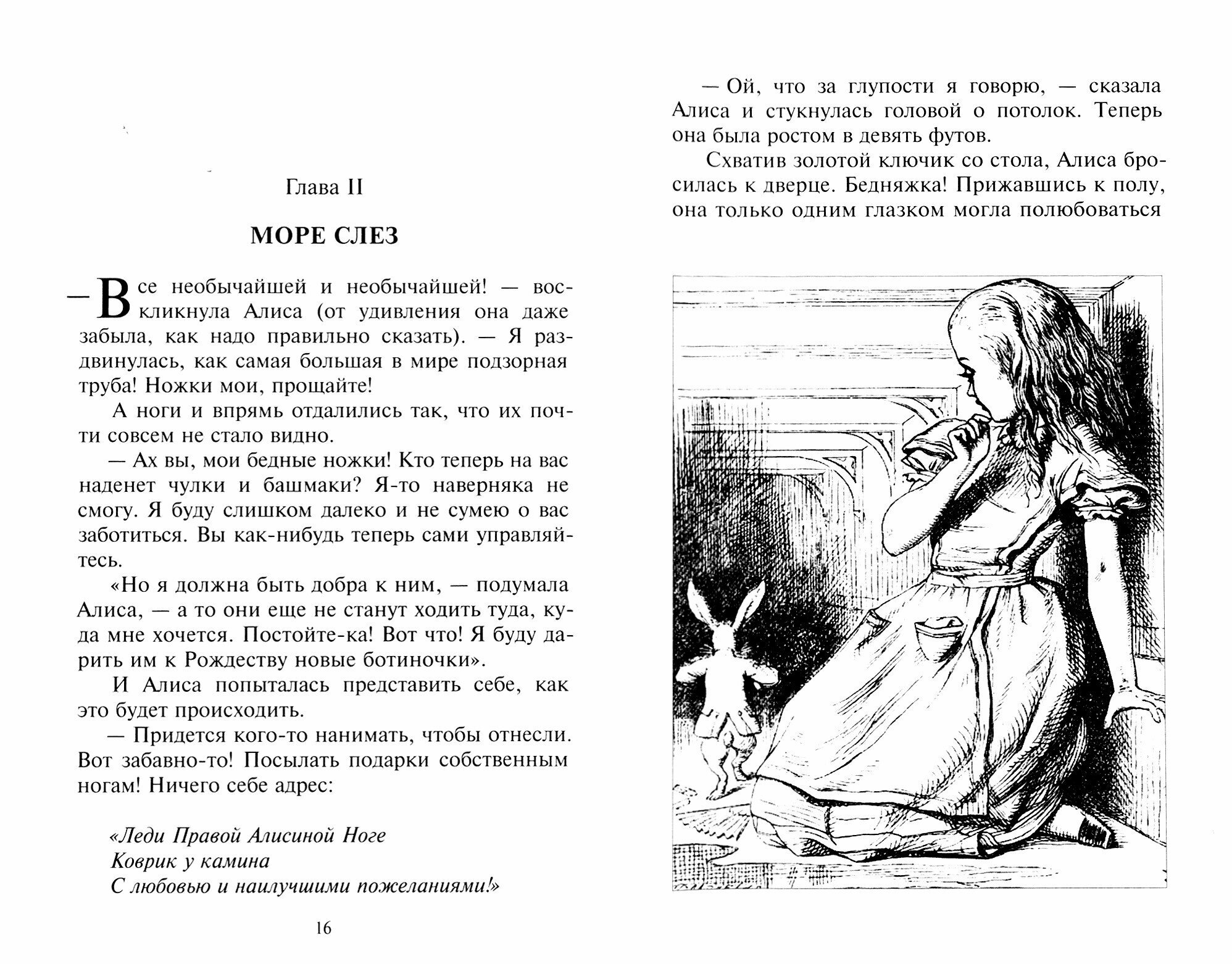 Говорят, королева Виктория, прочитав "Алису в Стране чудес", пришла в неописуемый восторг и приказала своему секретарю немедленно доставить ей все имеющиеся произведения автора. И немало удивилась, когда ей принесли кипу научных трудов, ведь Льюис Кэрролл в первую очередь был серьезным ученым - профессором математики. Причудливо-остроумное, насыщенное аллегориями повествование с первых строк погружает нас в удивительный мир, где все условно и относительно, парадоксально и как бы вывернуто наизнанку. Но именно это и заставляет взглянуть на привычные вещи другими глазами и удивиться существованию иной, давно забытой детской логики.
