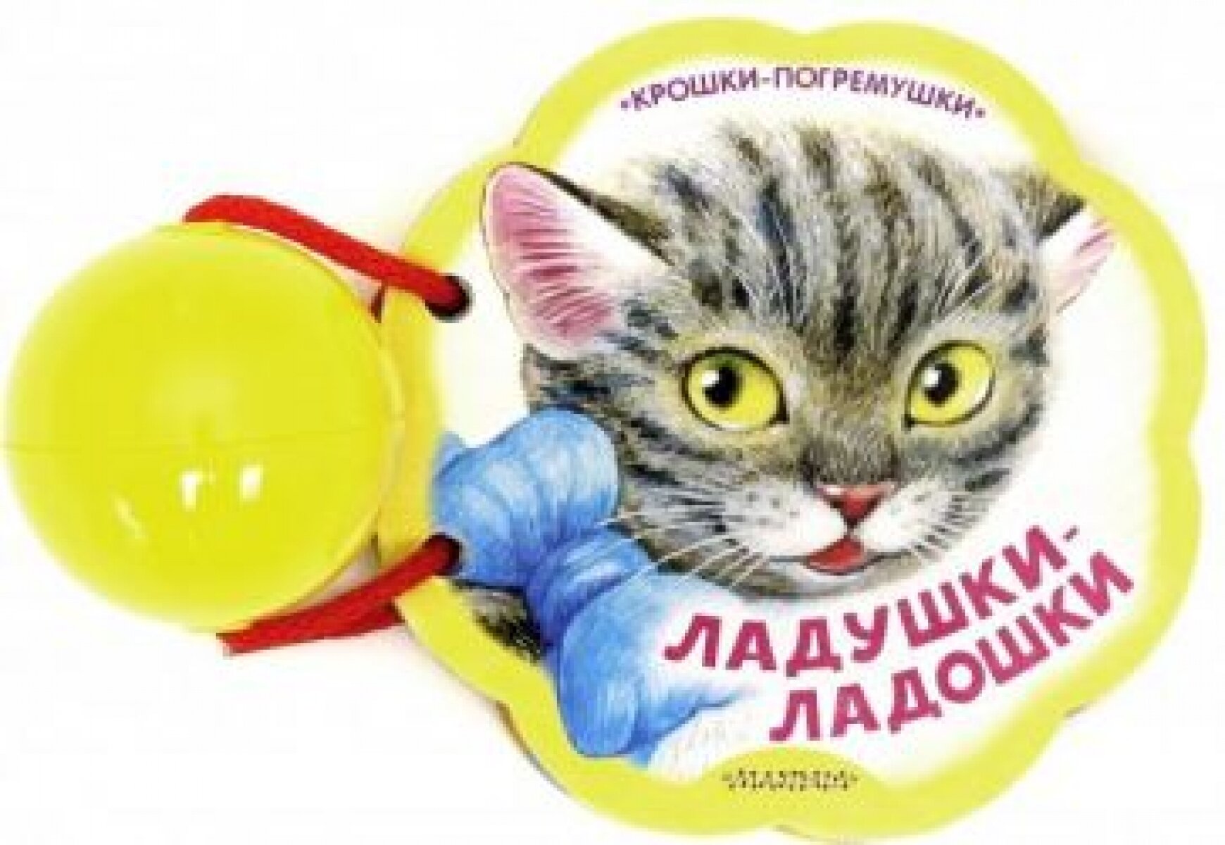 Хорошая маленькая книжка-погремушка. Внутри несколько замечательных известных потешек, и даже поместились маленькие красивые иллюстрации, не очень яркие, но привлекают внимание ребенка. Картон тонкий, поэтому если ребенок всё тянет в рот лучше не давать.Также нельзя давать без присмотра саму погремушку, поскольку если вытащить шнурок, то шуршащий материал из шарика будет выпадать.