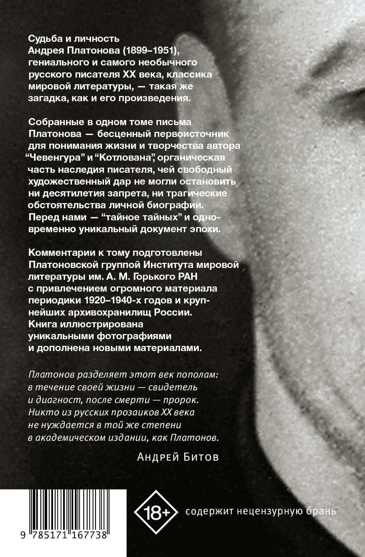 Собранные в одном томе письма Платонова - бесценный первоисточник для понимания жизни и творчества автора "Чевенгура" и "Котлована", органическая часть наследия писателя, чей свободный художественный дар не могли остановить ни десятилетия запрета, ни трагические обстоятельства личной биографии. Перед нами - "тайное тайных" и одновременно уникальный документ эпохи.
