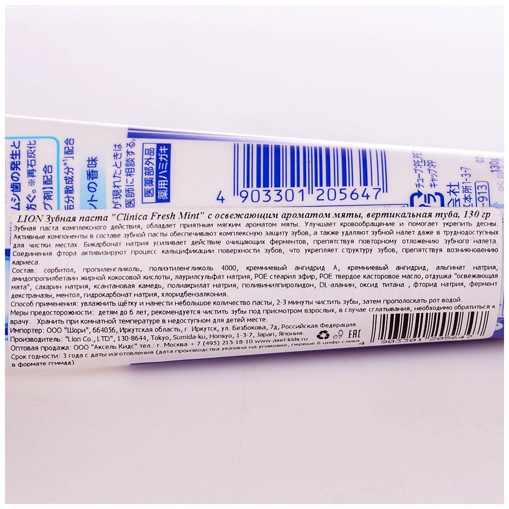 Зубная паста Lion Clinica Fresh Mint с освежающим ароматом мяты 130 гр (4903301-205647)