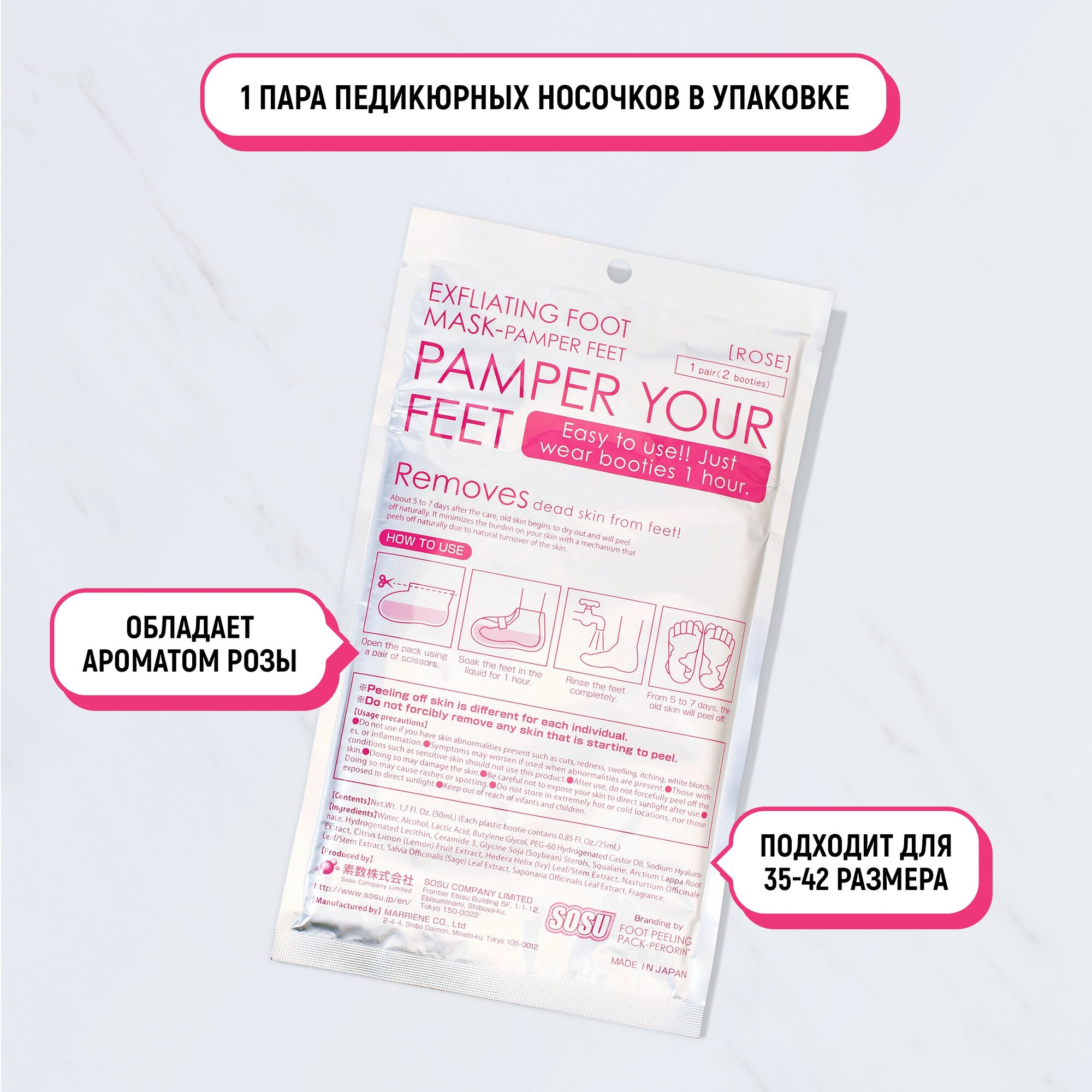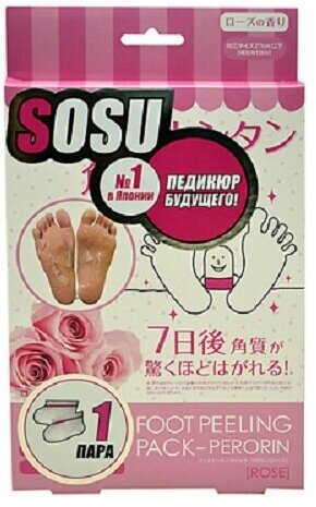 Носочки с приятным, женственным ароматом SOSU Foot Peeling Pack Perorin Rose заполнены жидким гелем на основе молочной к-ты, которая разрыхляет и размягчает ороговевший слой эпидермиса. Эффект от их применения проявляется на третий-пятый день: старая кожа начинает интенсивно отшелушиваться. Через 7 дней после проведения процедуры ваши ножки становятся мягкими и бархатистыми, как у младенца. SOSU Носочки для педикюра с ароматом розы не травмируют кожу и исключают опасность инфицирования, подходят для людей с ослабленным иммунитетом и диабетиков (одобрены Российской Диабетической Ассоциацией).