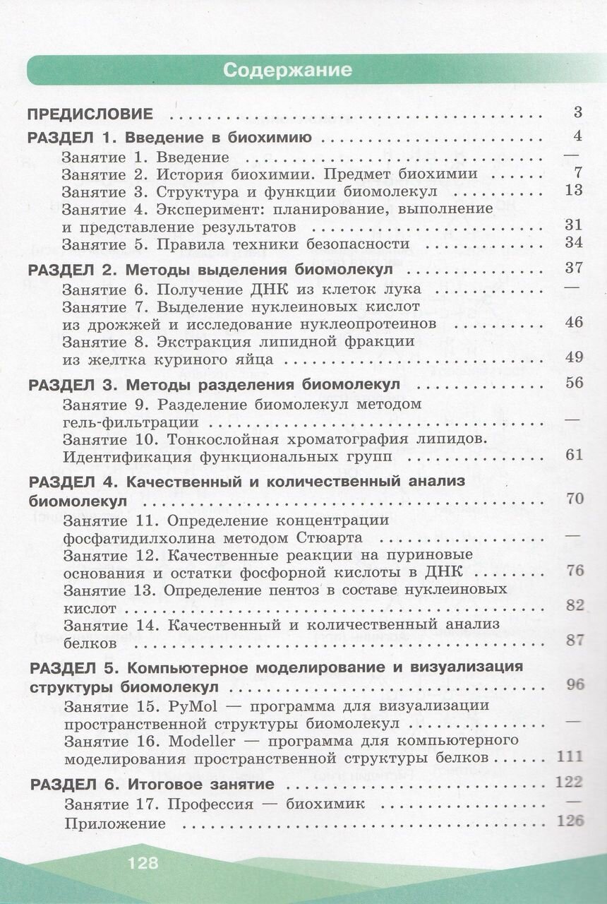Хороший учебник, много интересных практических работ, часть которых можно сделать в школе (но не все, для некоторых требуется дополнительное оборудование, например, спектрофотометр). Увидела несколько интересных идей для занятий с 10-11 классами по биохимии. Хотя наверное, предполагает уже знакомство с основными методами биохимии у учителя. Можно использовать как дополнительный материал для подготовки к факультативным занятиям.