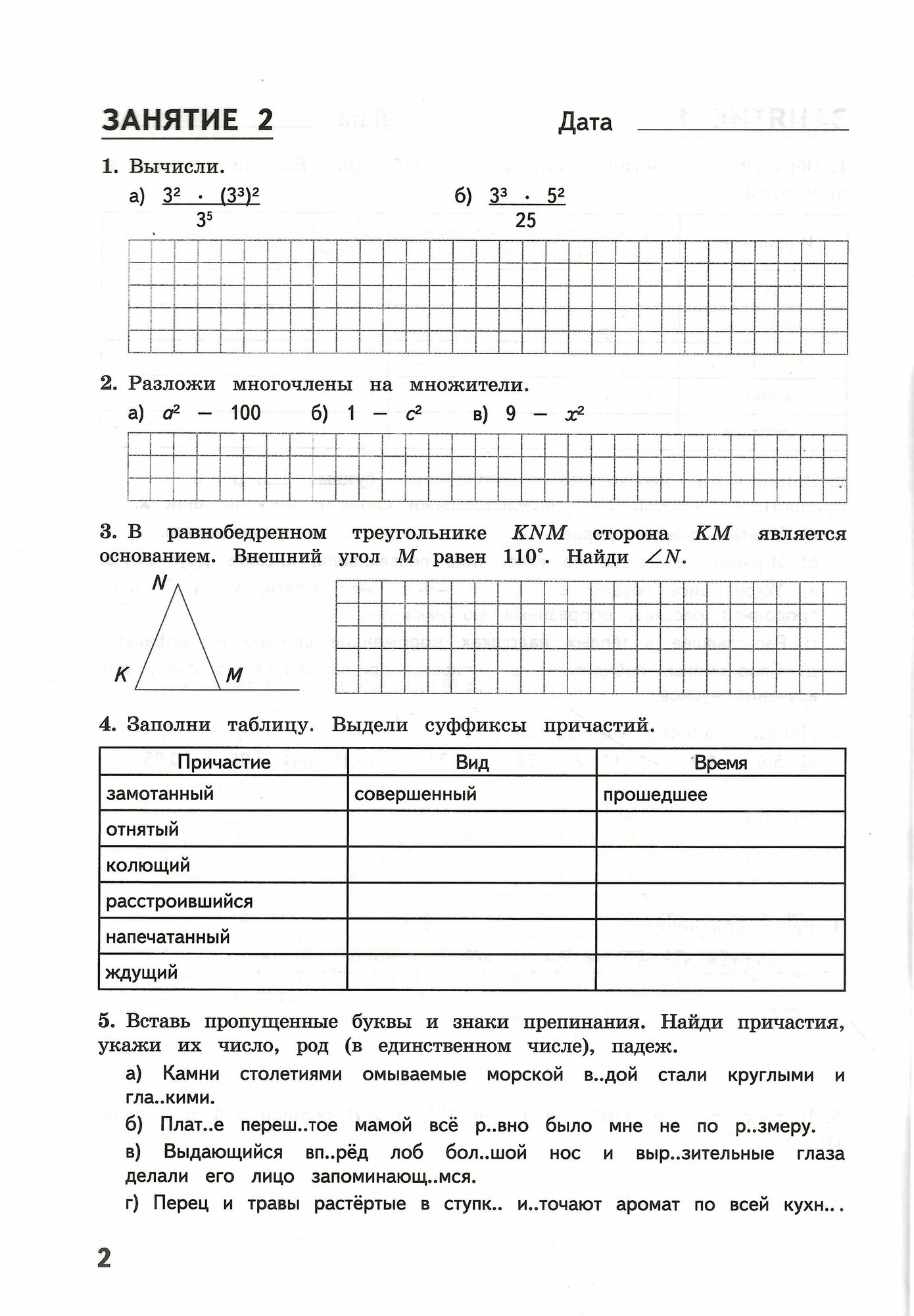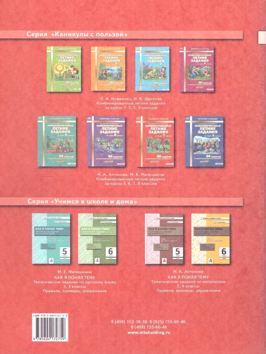 Данная тетрадь предназначена для повторения и закрепления в летний период материала по русскому языку и математике за курс 7-го класса. Работы охватывают все пройденные темы по этим предметам, что позволяет сохранить приобретённые за год умения и навыки. Задания предлагаются детям для самостоятельного выполнения, а ответы к ним позволят сократить у взрослых время на их проверку. В тетради предложен примерный список книг для чтения. Дневник читателя поможет родителям контролировать систематическое чтение ребёнка. Тетрадь также может быть использована в течение учебного года.