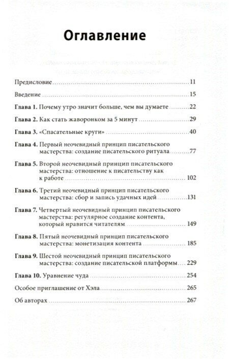 Увы, здесь очень мало полезного и нового. Собственно о раннем пробуждении кое-что есть, но специфических рекомендаций для писателей, а именно по организации творческой работы по утрам, почти нет.