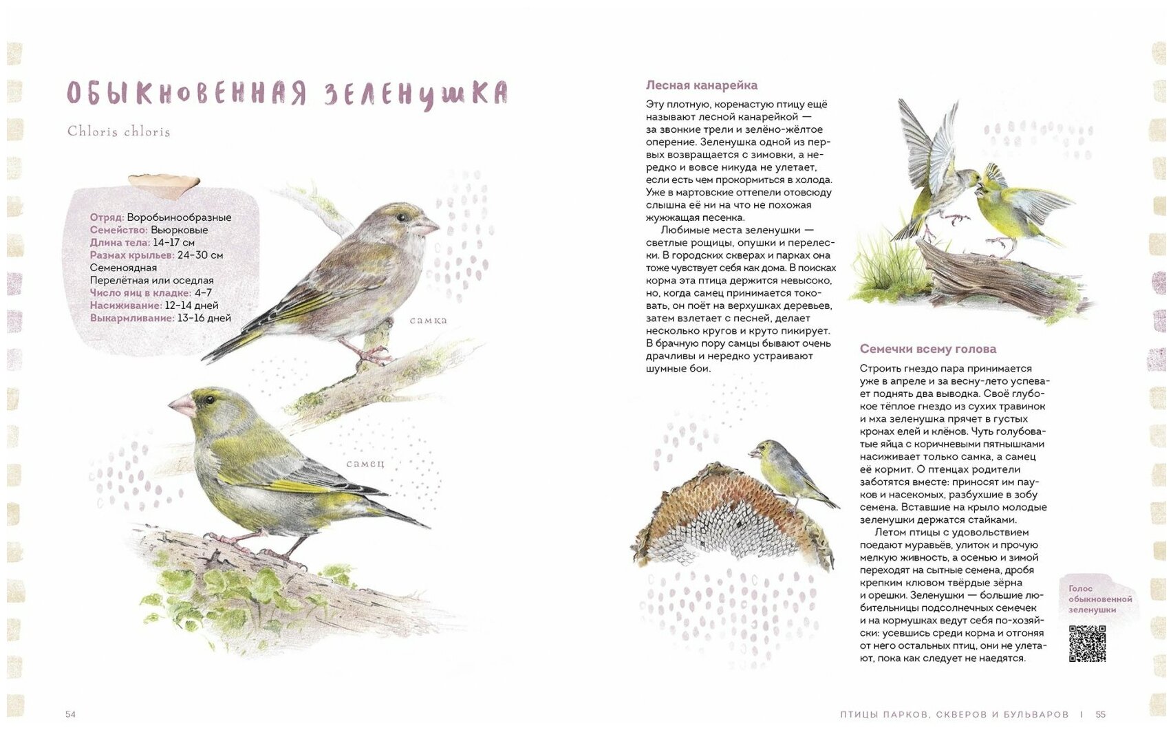 Мы с дочкой очень любим книги про птиц. Как же мы ждали эту книгу, и она нас не разочаровала! Потрясающие иллюстрации, увлекательные тексты, высокое качество оформления всей книги в целом! Читали взахлёб! Прочитав статью, можно с помощью QR-кода рядом на данной странице послушать голос птицы! Как же классно! Хоть книга и рекомендована с 5 лет, подойдет, на наш взгляд и для детей помладше и для взрослых! В комплекте также идут наклейки для краткого дневника наблюдений в конце книги. Эта книга стала одним из лучших наших пополнений библиотеки за последнее время!