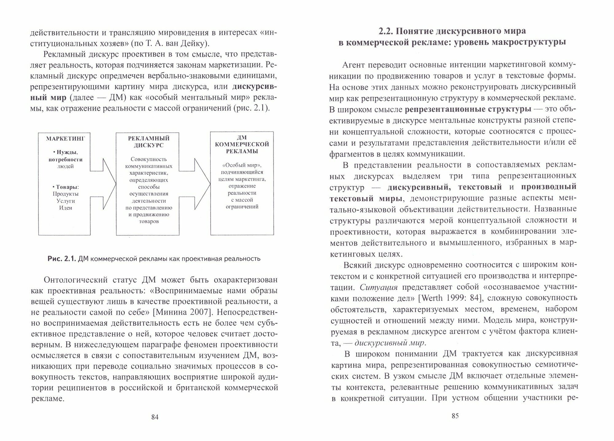 Цель исследования - установление общих закономерностей и национально-культурной специфики миромоделирования в рекламных дискурсах Великобритании и России. В книге рассматриваются макроструктуры дискурсивных миров в сопоставительном аспекте; выявляется ведущее свойство дискурсивных миров в британской и российской коммерческой рекламе; с точки зрения профилирования лингвоконцептов, обладающих миромоделирующим потенциалом, анализируются дискурсивные миры в коммерческой рекламе двух стран; разрабатывается типология текстовых миров. Материалом для исследования служит инновационная сетевая реклама.