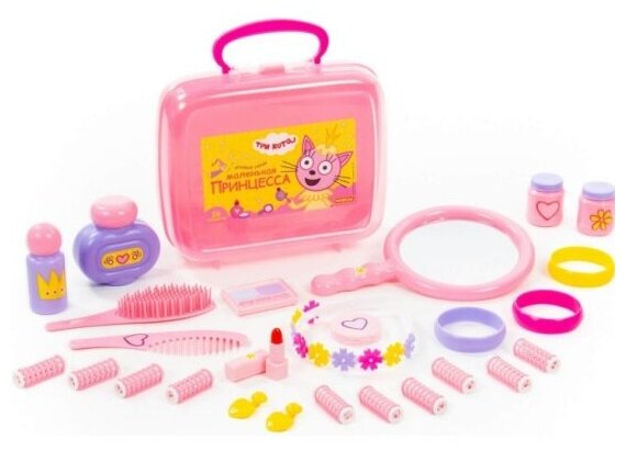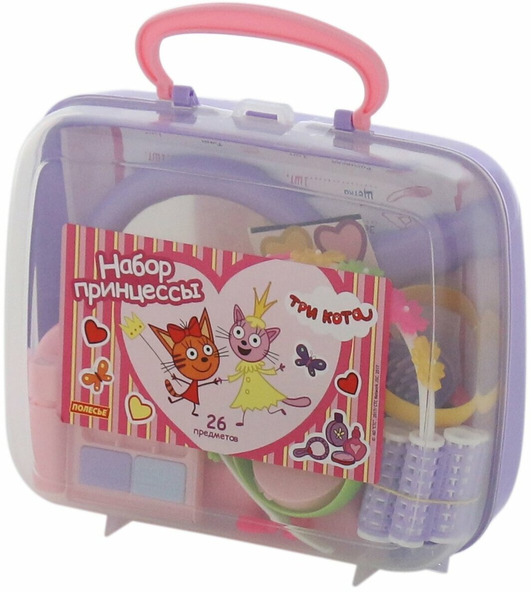 Теперь озорные котята из мультфильма «Три кота» будут радовать детей во время игр с набором «Принцессы» Полесье 65377. Детские игрушки выделяются ярким дизайном, частью которого стали хвостатые персонажи из любимого мультсериала. Игрушки упакованы в контейнер, куда юная модница может поместить и другие свои аксессуары для волос. С набором "Три Кота" "Принцессы" девочки могут организовать свой салон красоты или парикмахерскую, тем самым развивать воображение и фантазию.В состав набора «Три кота» «Принцессы» входят:- расчески - 2 шт,- обруч для волос - 1 шт,- бигуди с фиксаторами - 10 шт,- браслеты - 3 шт,- клипсы - 1 пара,- зеркало - 1 шт,- фен – 1 шт,- имитация пудры – 1 шт,- имитация теней для век – 1 шт,- имитация помады – 1 шт,- имитация флакончиков с косметическими средствами – 4 шт.Характеристики:Возраст: от 3 лет.Пол: девочки.Материал: пластик.Тип упаковки: пластиковый контейнер.Размеры упаковки: 28 х 19 х 15 см.Вес в упаковке: 0,51 кг.Бренд: Полесье.Страна бренда: Беларусь.