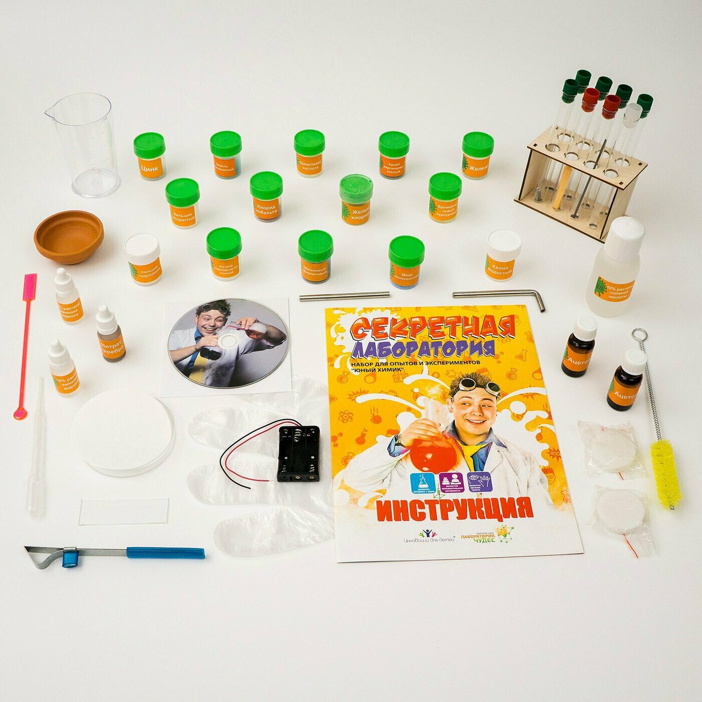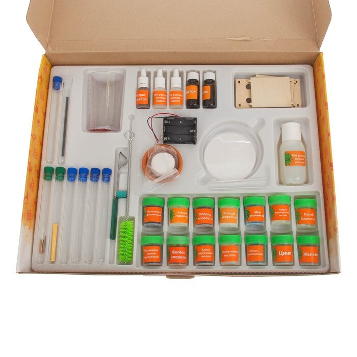 Благодаря этому комплекту, ребенок сможет провести не один десяток интереснейших химических опытов, в ходе которых он узнает много нового об окружающем мире.