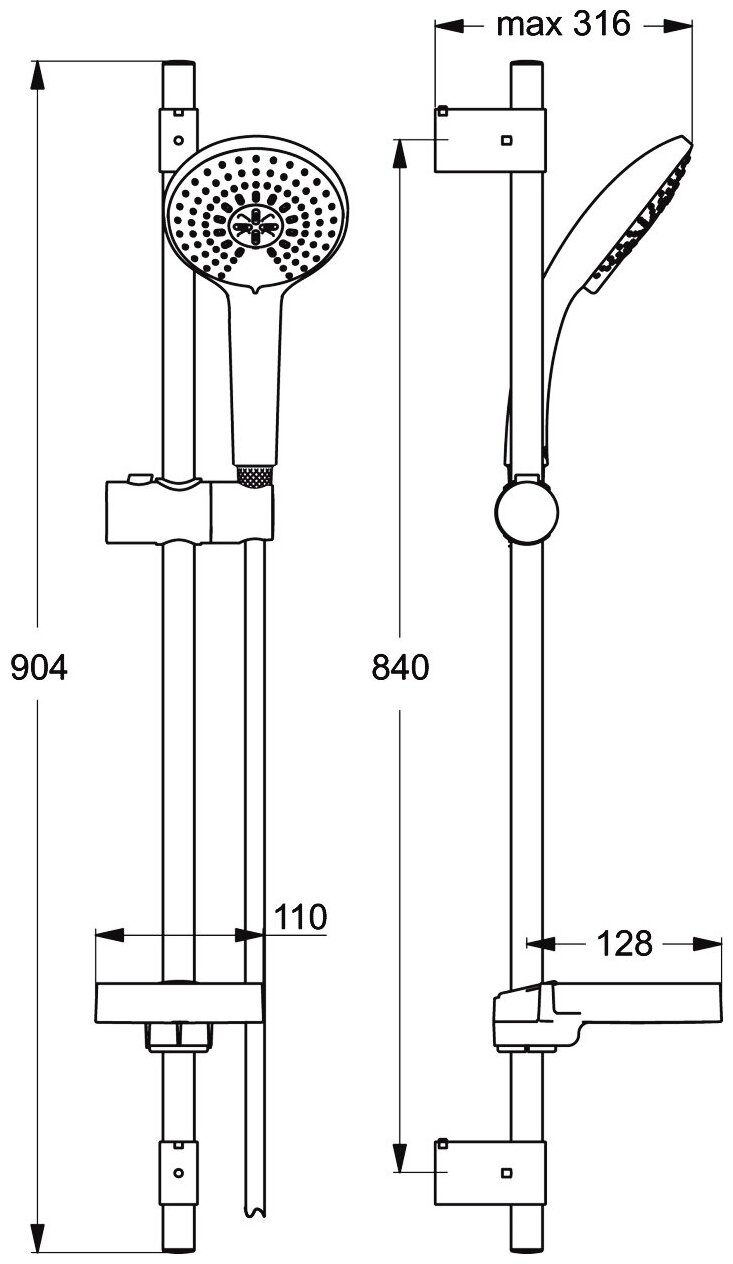 | Оснащение | душевая лейка, мыльница, шланг для душа, настенный держатель |