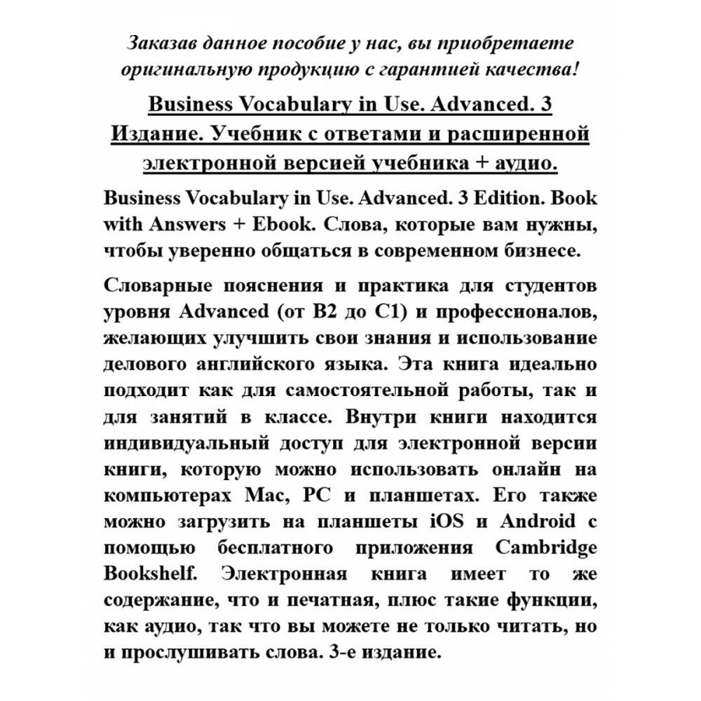 Сервис сравнения цен СкидкаГИД предлагает сравнить цены на товар «Книга: Bill Mascull "Business Vocabulary in Use. Advanced. Book with Answers and Enhanced ebook" мелованная (Mascull Bill); Cambridge, 2017»