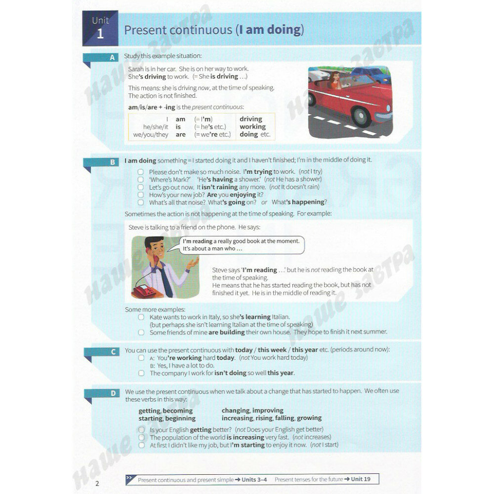 Каждый разворот представляет собой правила (слева) и упражнения (справа). В конце есть тест, с помощью которого можно определить какие темы стоит повторить. Книга стоит своих денег, к ней можно постоянно обращаться, как к сборнику с правилами грамматики. Качество печати превосходное. -