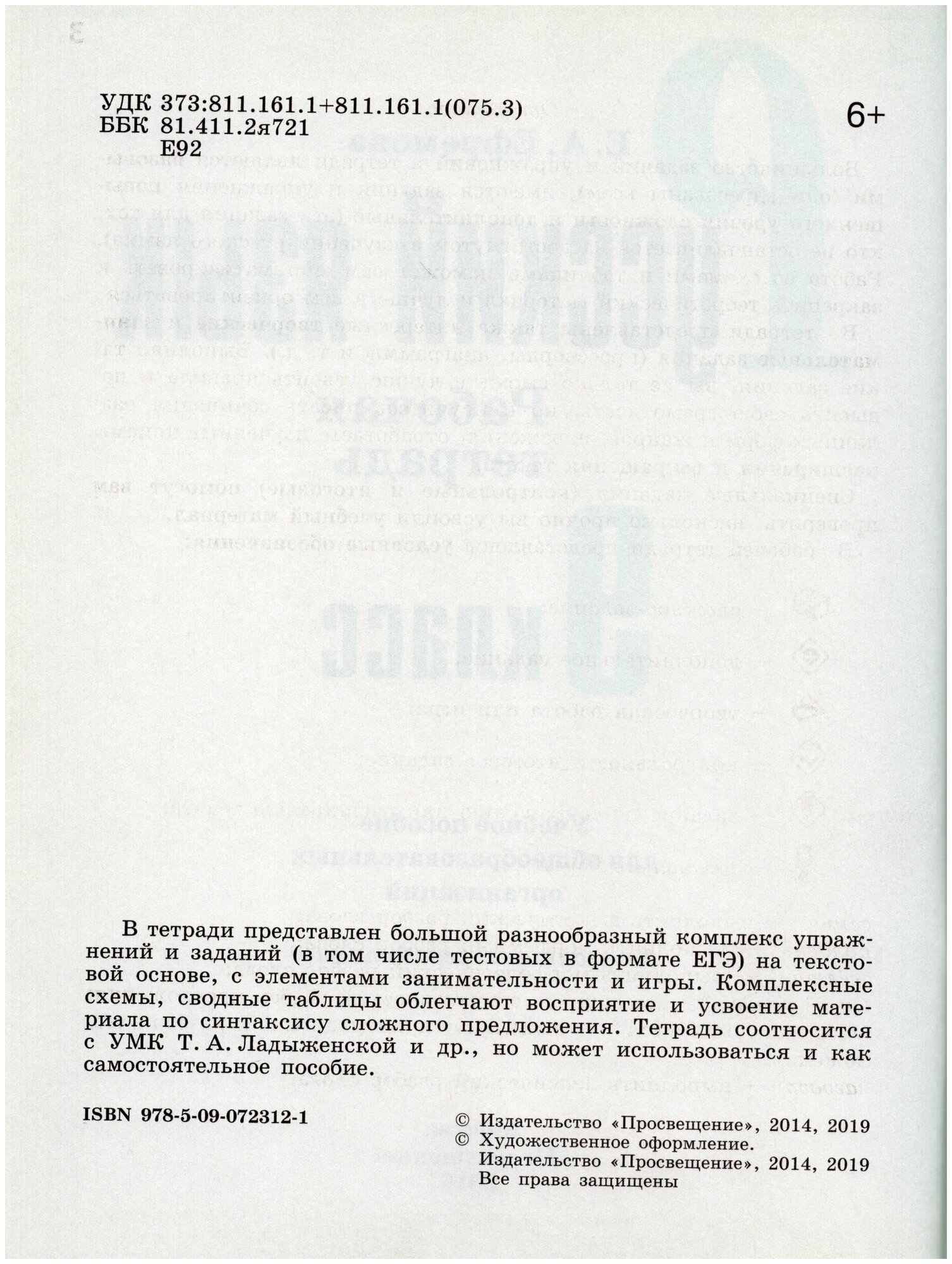 В тетради представлен большой разнообразный комплекс упражнений и заданий (в том числе тестовых в формате ЕГЭ) на текстовой основе, с элементами занимательности и игры. Комплексные схемы, сводные таблицы облегчают восприятие и усвоение материала по синтаксису сложного предложения. Тетрадь соотносится с УМК Т. А. Ладыженской и др., но может использоваться и как самостоятельное пособие.