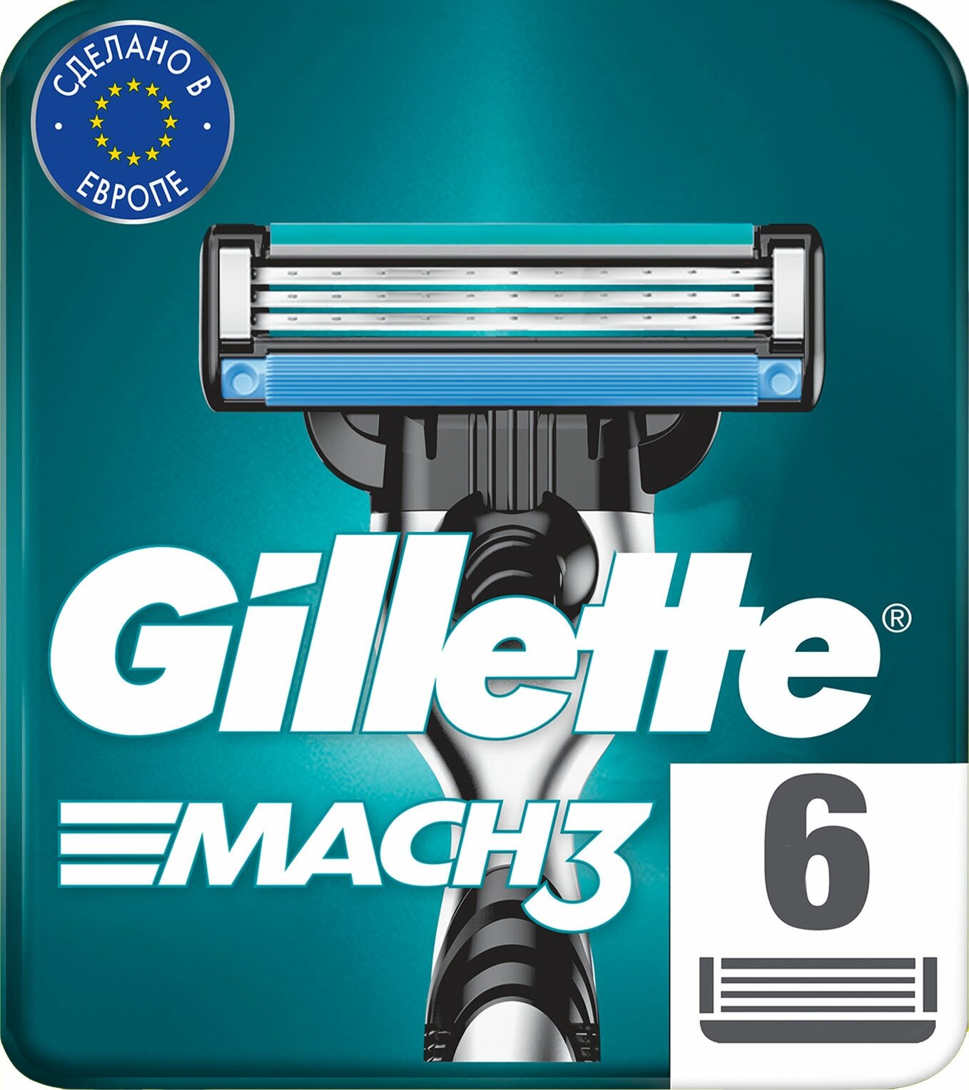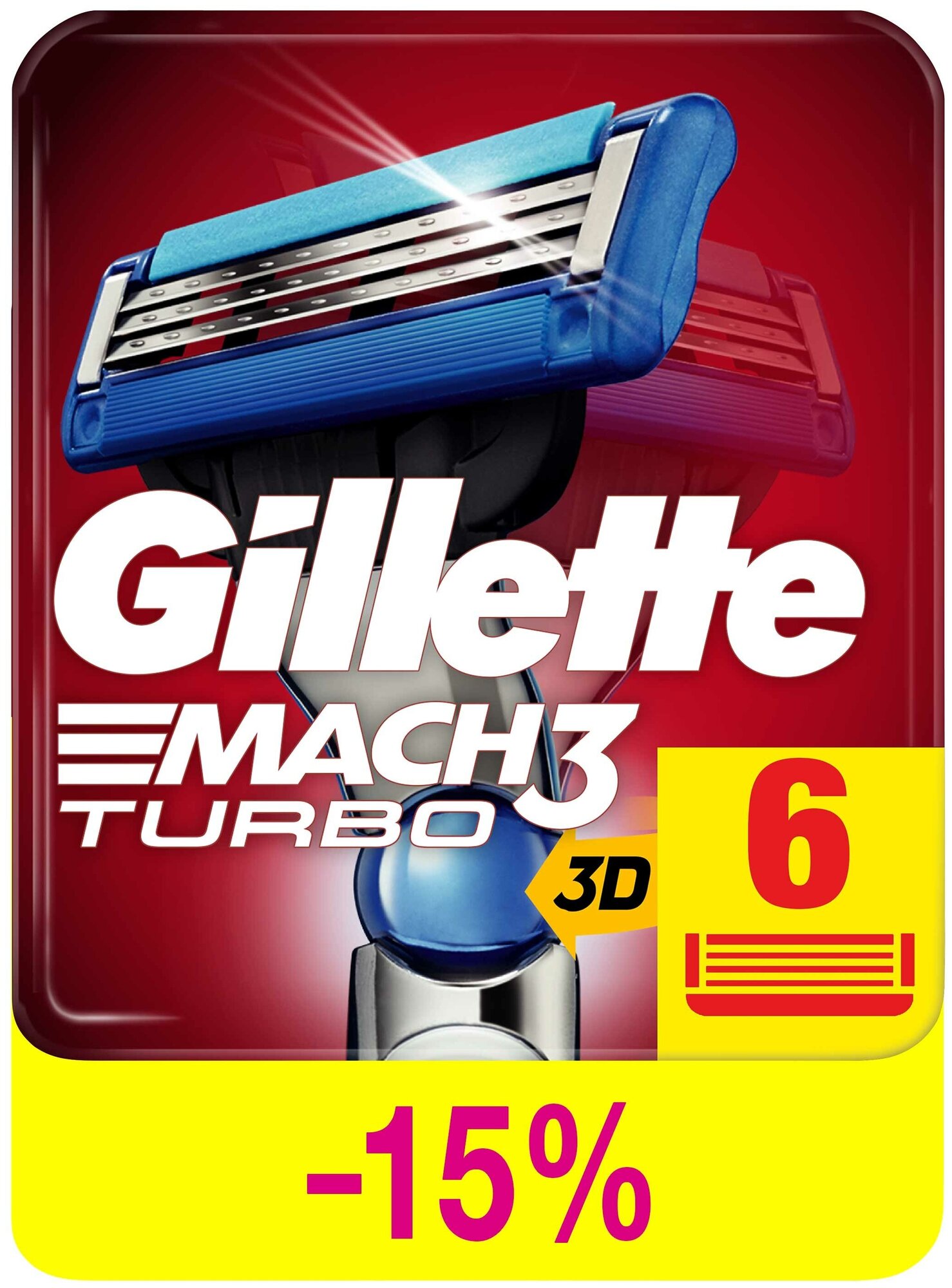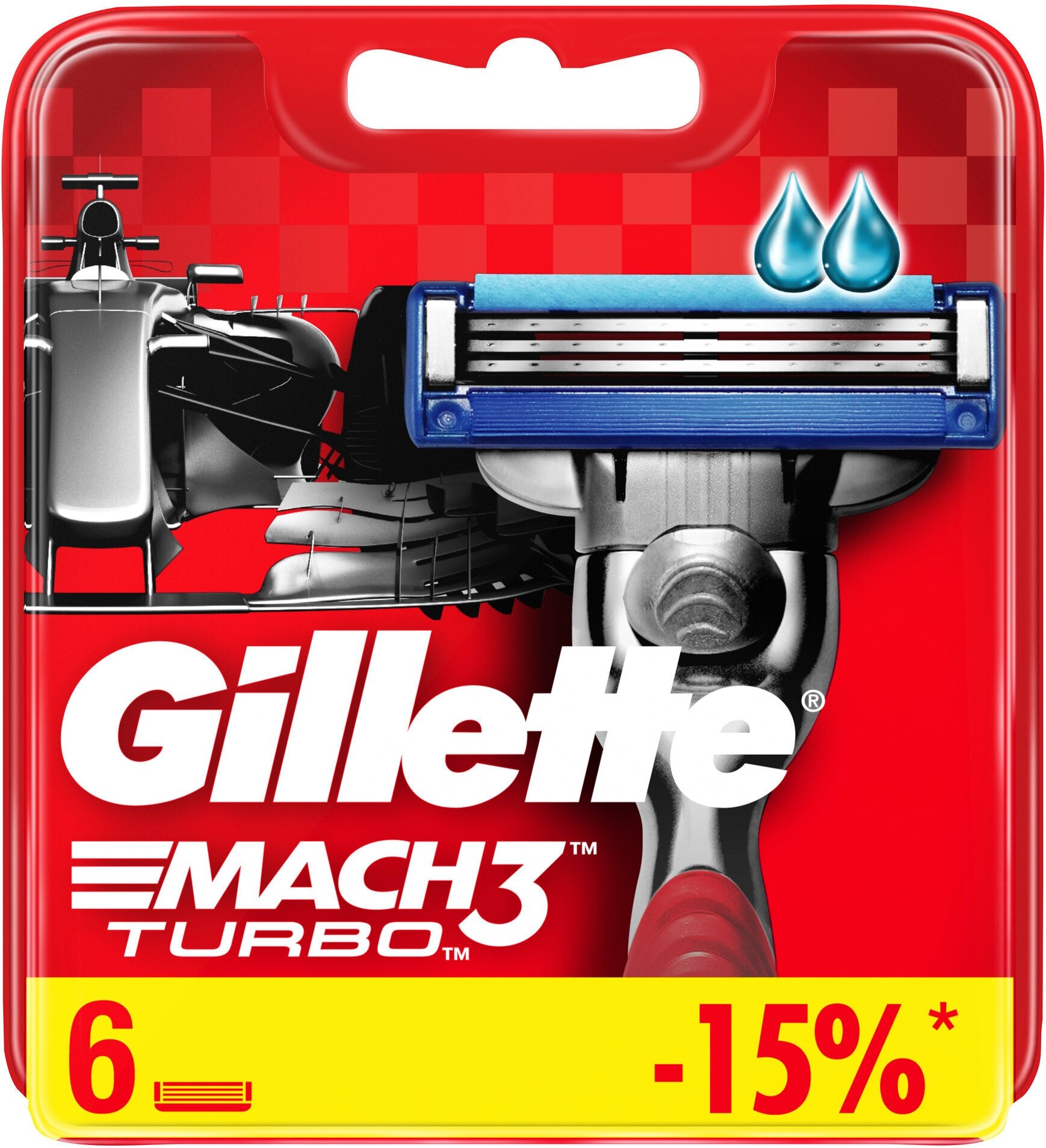 GILLETTE Mach 3 Turbo Сменные кассеты для бритья с 3 лезвиями мужские 6 шт