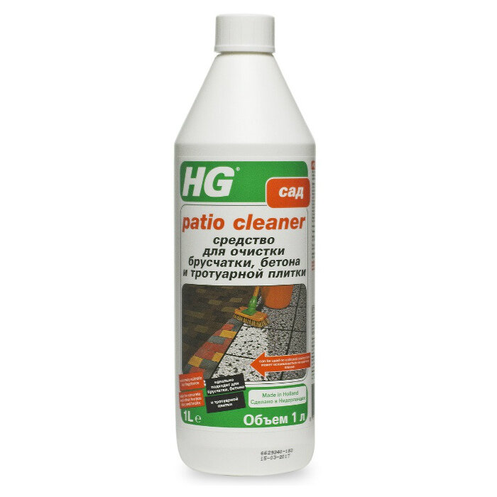 Чистящее средство возвращает первоначальный вид грязной или посеревшей поверхности плитки, брусчатки и тротуара. Применение: Сначала тщательно подметите поверхность, чтобы по возможности убрать всю сухую грязь. Смочите водой грязные участки, особенно швы, не оставляя луж. Используйте резиновые/полиэтиленовые перчатки. Вылейте содержимое бутылки в большую емкость и добавьте 4 литра воды. Воспользуйтесь щеткой, чтобы нанести раствор на поверхность и почистить ее. Дайте продукту подействовать в течение нескольких минут. После этого почистите поверхность щеткой еще раз. Не допускайте высыхания жидкости. Затем промойте поверхность большим количеством воды. После растворения в воде (1:4) продукт не опасен для цветов и растений. Для защиты от повторного появления растительного налета после применения продукта HG cредство для очистки брусчатки, бетона и тротуарной плитки рекомендуется обработать поверхность средством HG средство для удаления растительного налета. Расход: Одного литра средства достаточно для обработки около 25 м2 поверхности.