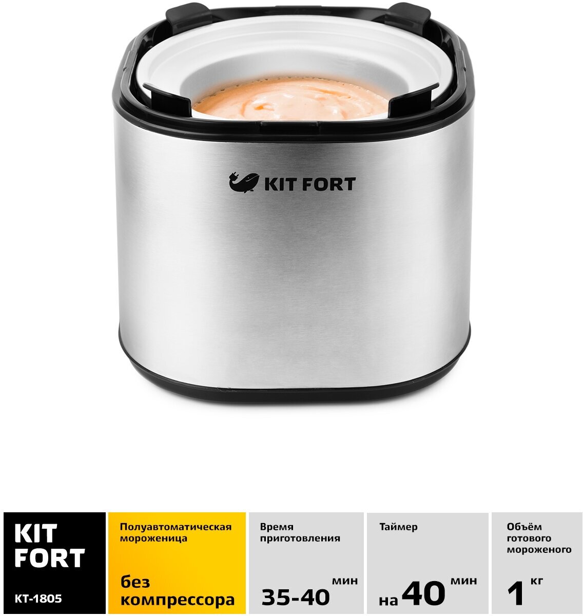 Мороженица Kitfort 9.5Вт 1500мл. серебристый/черный КТ-1805