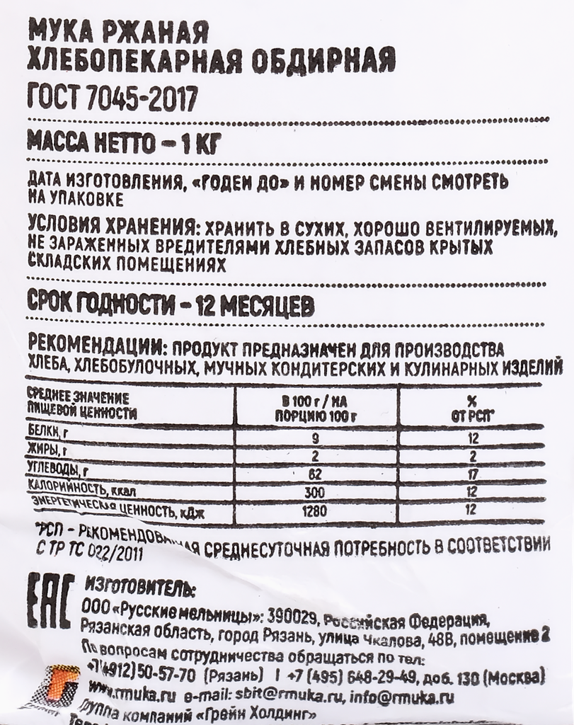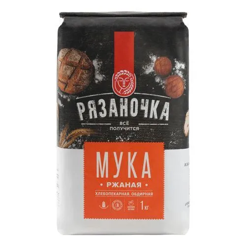 Мука хлебопекарная ржаная обдирная ТМ "Рязаночка". Предназначена для хлеба,хлебобулочных и других кулинарных изделий.
