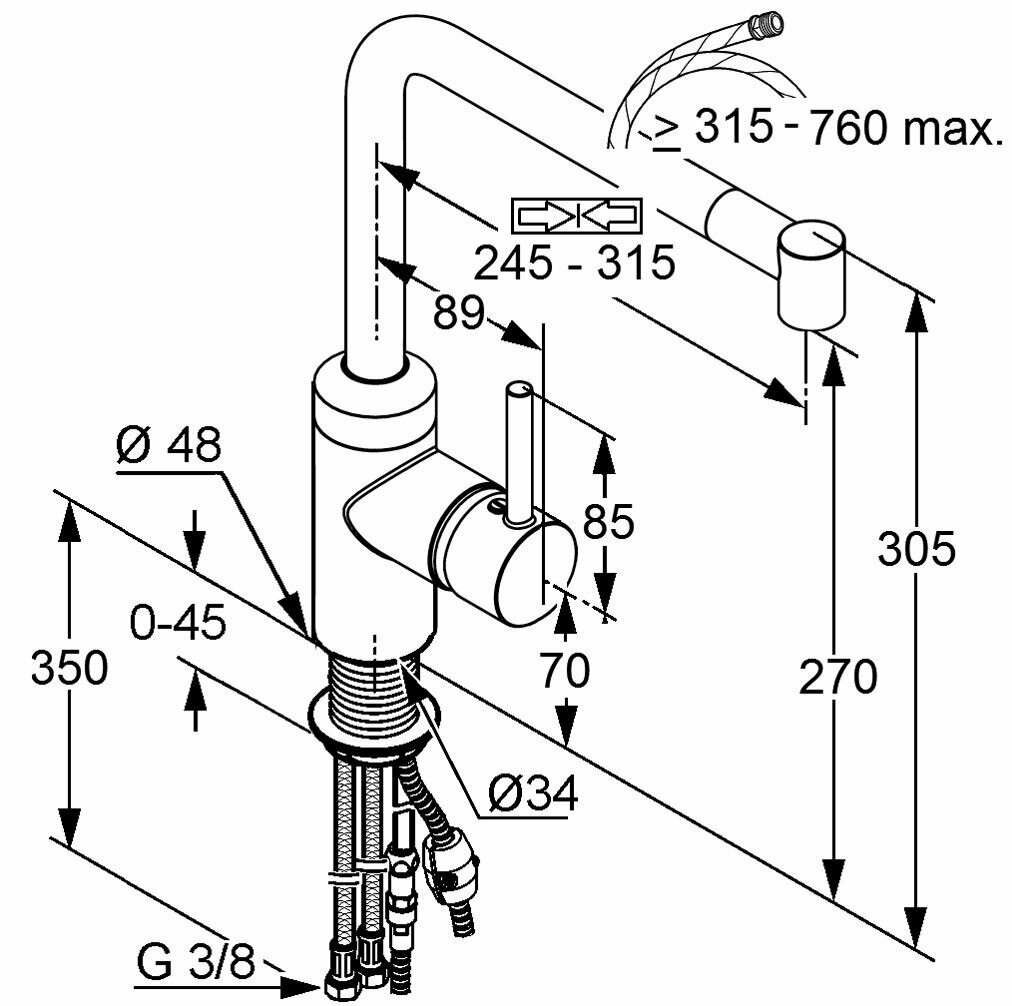 - Длина гибких шлангов 350 мм (с гайками G3/8")