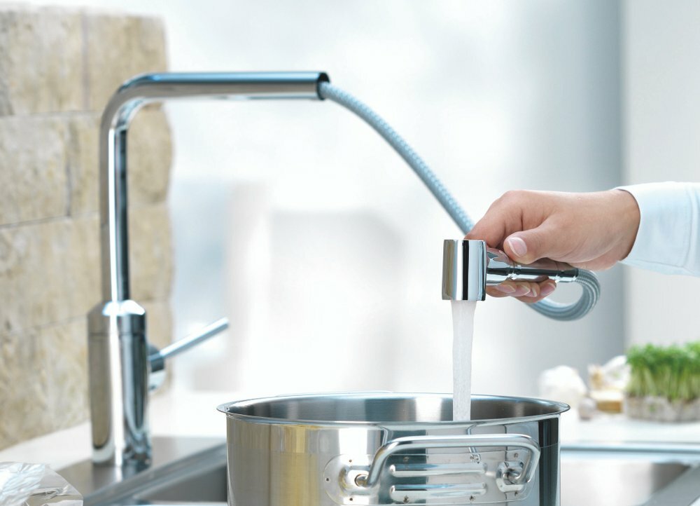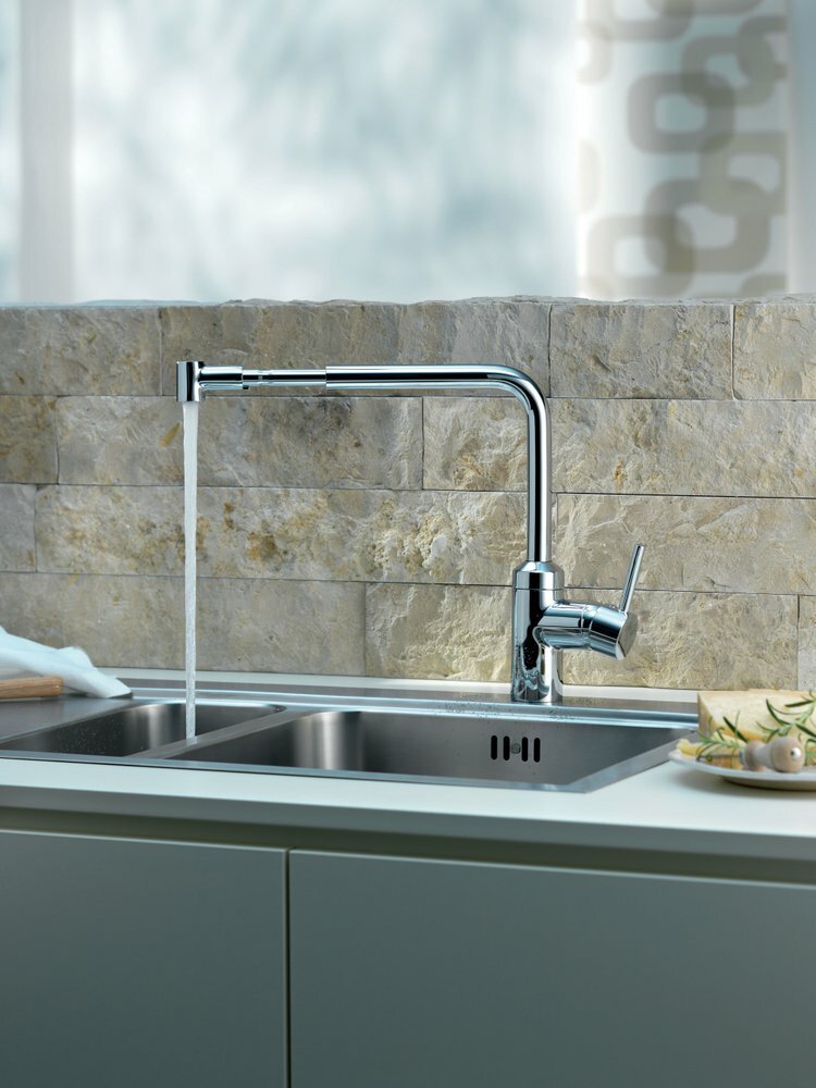 Плавные линии и простой дизайн придают этому смесителю оттенок экстравагантности. Идеальный вариант для современной кухни в стиле минимализма. Поворачиваемый на 360° излив обеспечивает дополнителный комфорт и свободу. Длина излива может увеличиваться до 760 мм. Выдвижная часть, выполненная из латуни, гарантирует качество, долговечность и удобство в использовании.