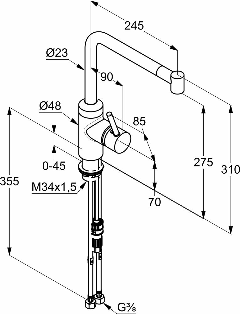 | Длина излива в мм. | 245 |