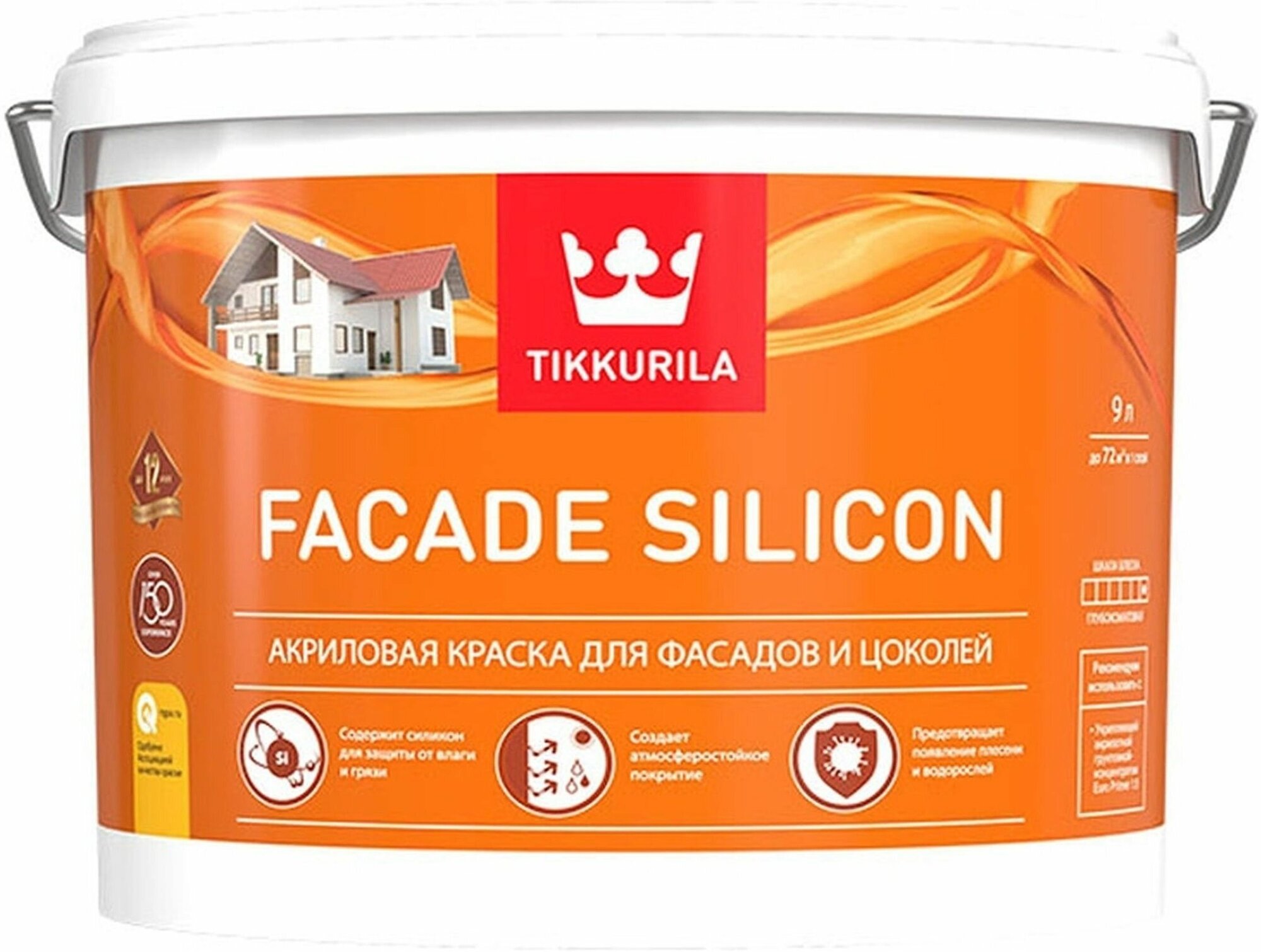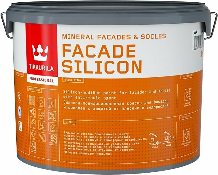 Краска FACAD SILI CON VVA 9 л от TIKKURILA предназначена для декорирования цоколей и фасадов помещений различного назначения.