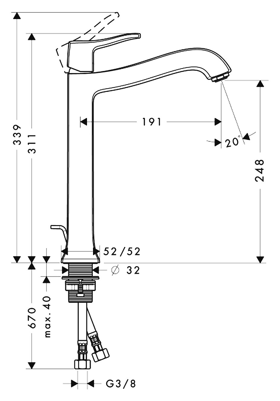 | Высота излива | 248 мм |