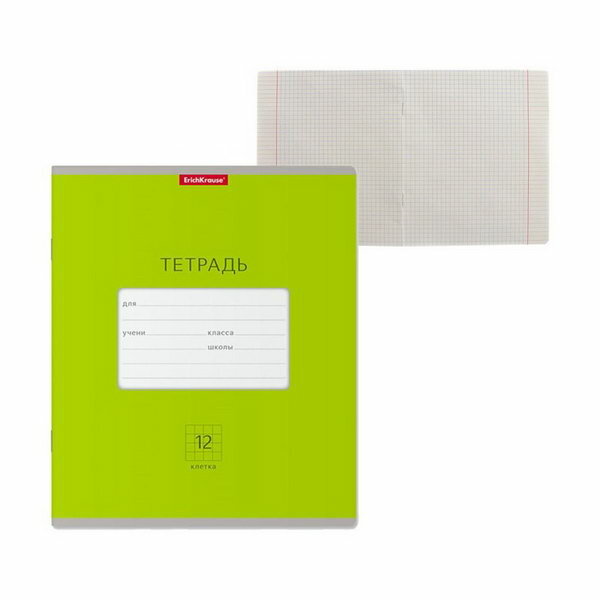 Тетрадь А5+ 12л клетка Erich Krause школьная Классика Bright зеленая (46478)