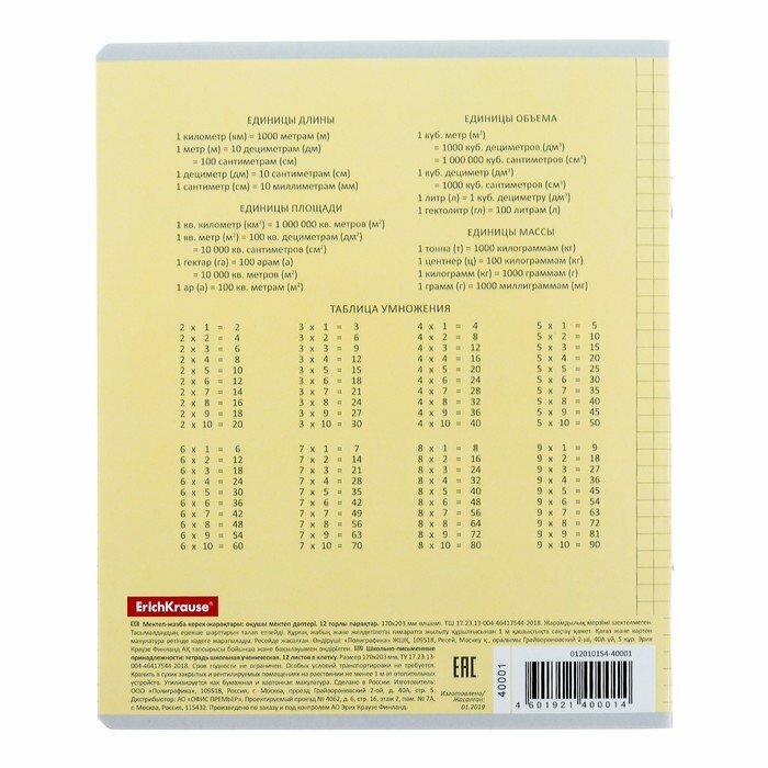 На сегодняшний день товар «Тетрадь А5+ 12л клетка Erich Krause школьная Классика с линовкой желтая (40001)» можно купить с кешбеком в 1 магазине: Яндекс.Маркет