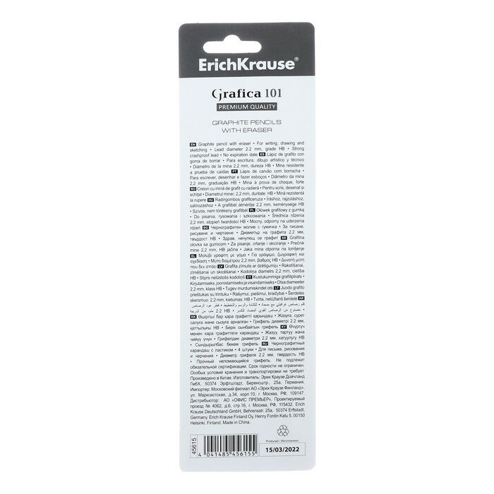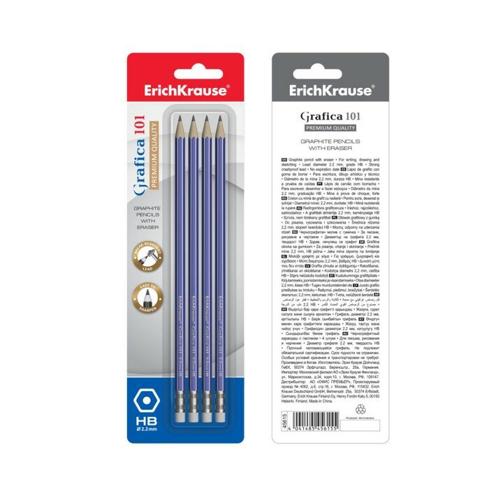 На сегодняшний день товар «Карандаш HB Erich Krause чернографитный шестигранный с ластиком ErichKrause Grafica 101 (45615)» можно купить с кешбеком в 1 магазине: Яндекс.Маркет