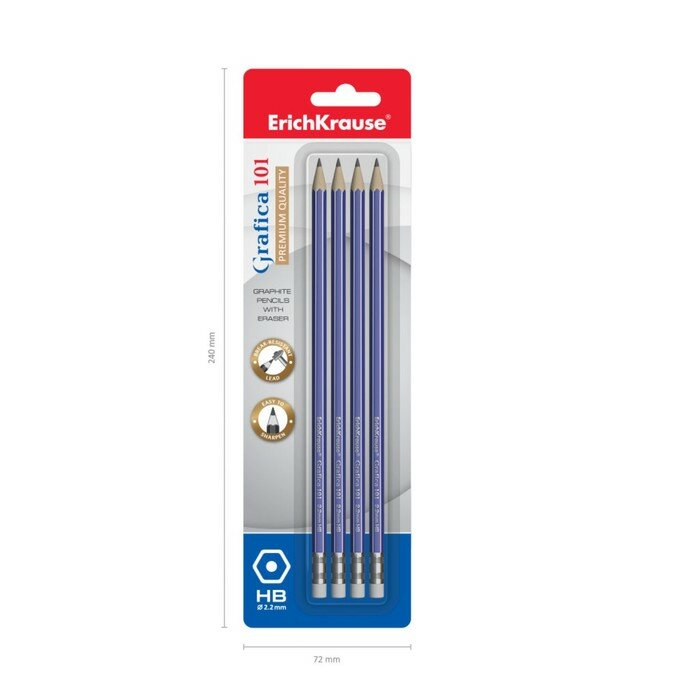 Карандаш HB Erich Krause чернографитный шестигранный с ластиком ErichKrause Grafica 101 (45615)