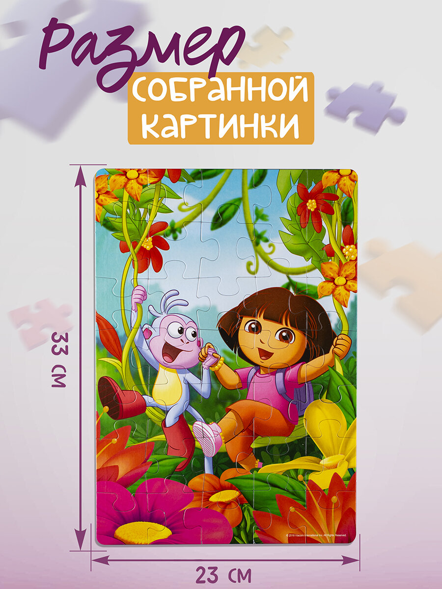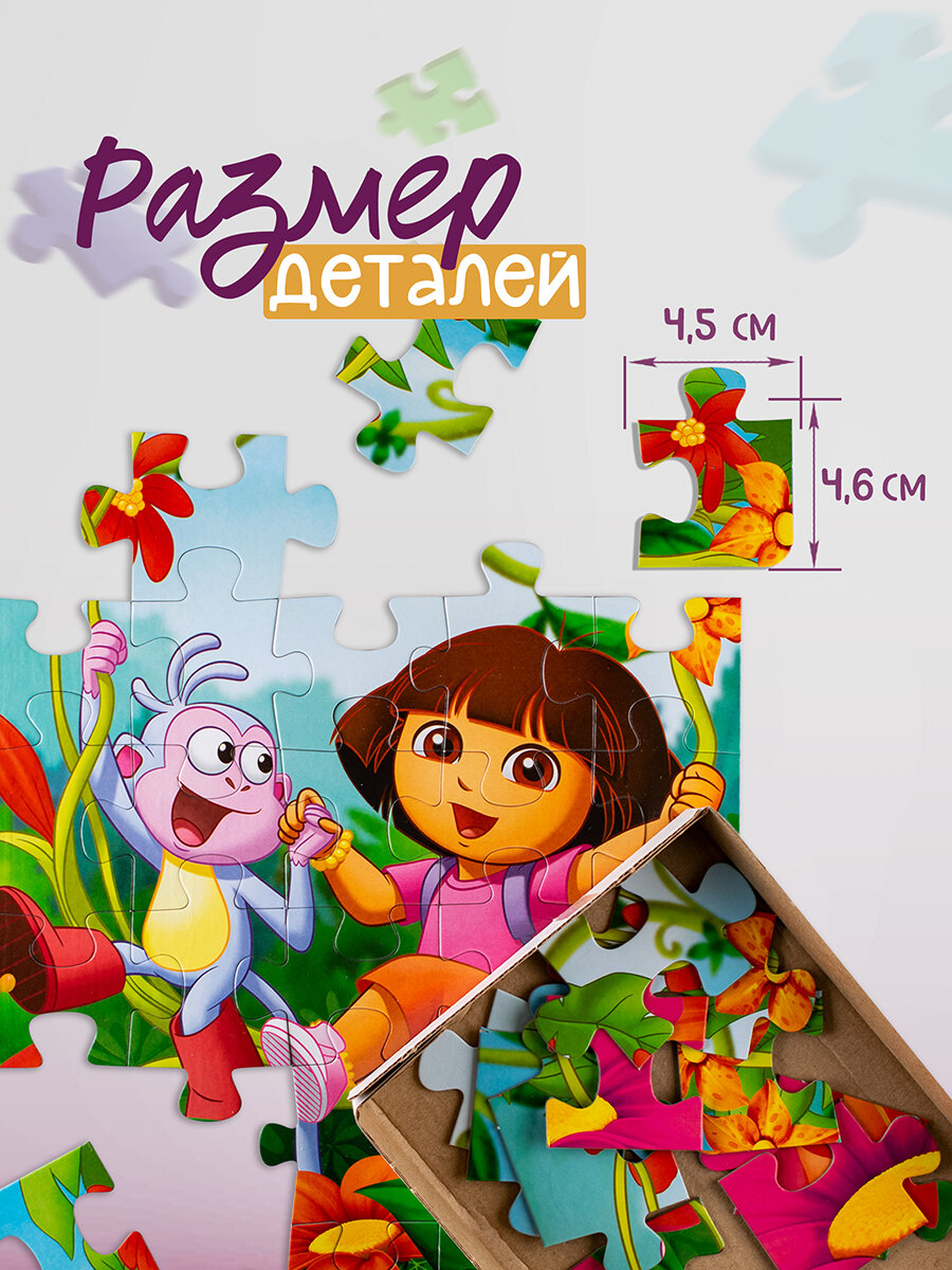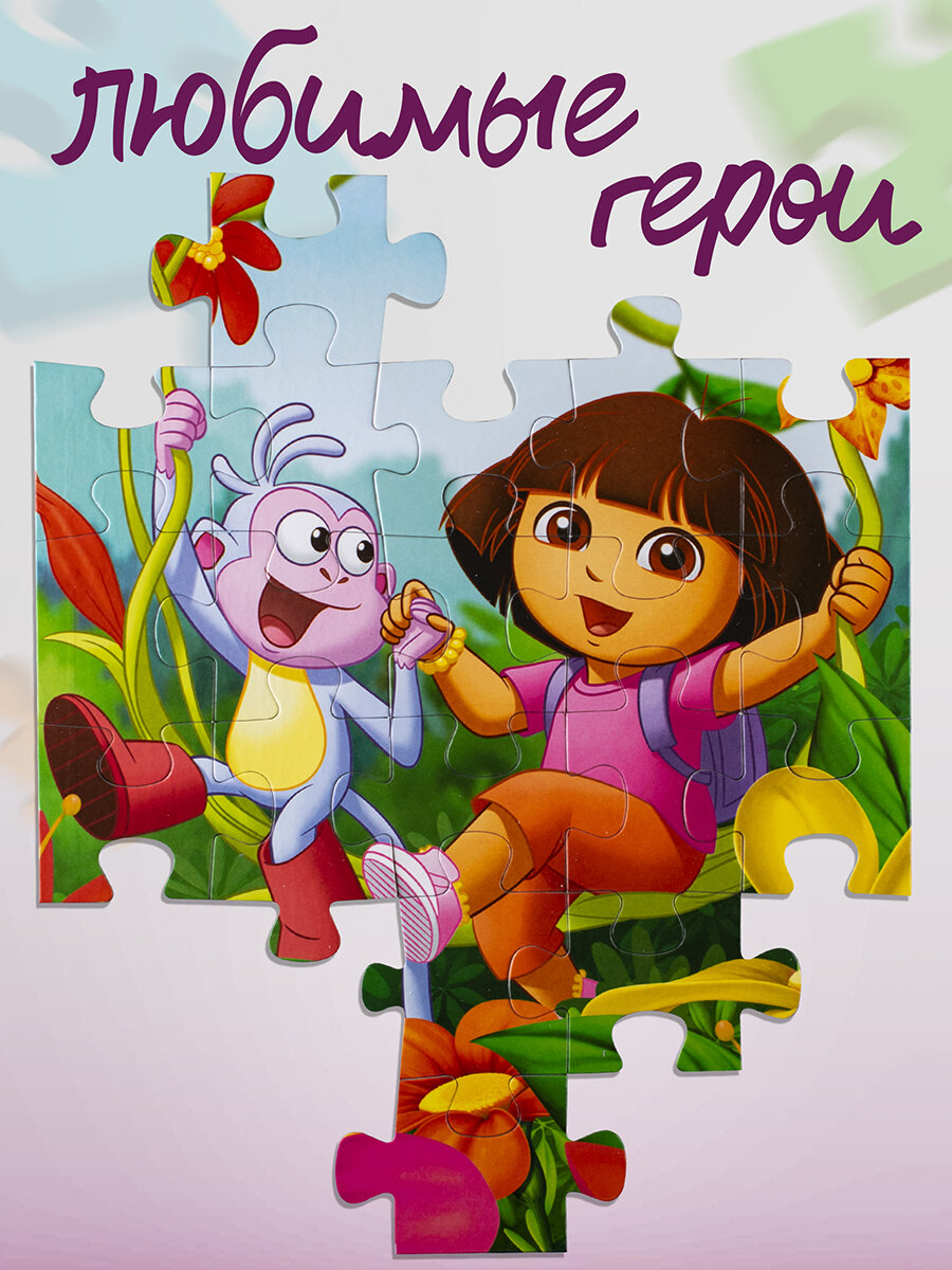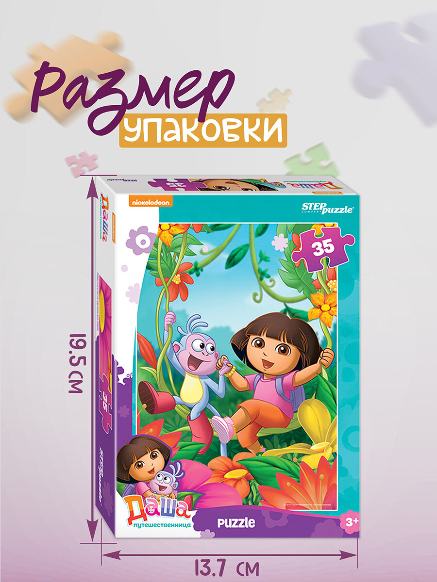 Пазл Даша-путешественница состоит из 35 деталей. На его картинке изображены главные герои одноименного мультфильма корпорации «Никелодеон». Кажется, в этот раз Даша и обезьянка Башмачок отправились в джунгли? Пазл активно развивают мышление, внимание и память.