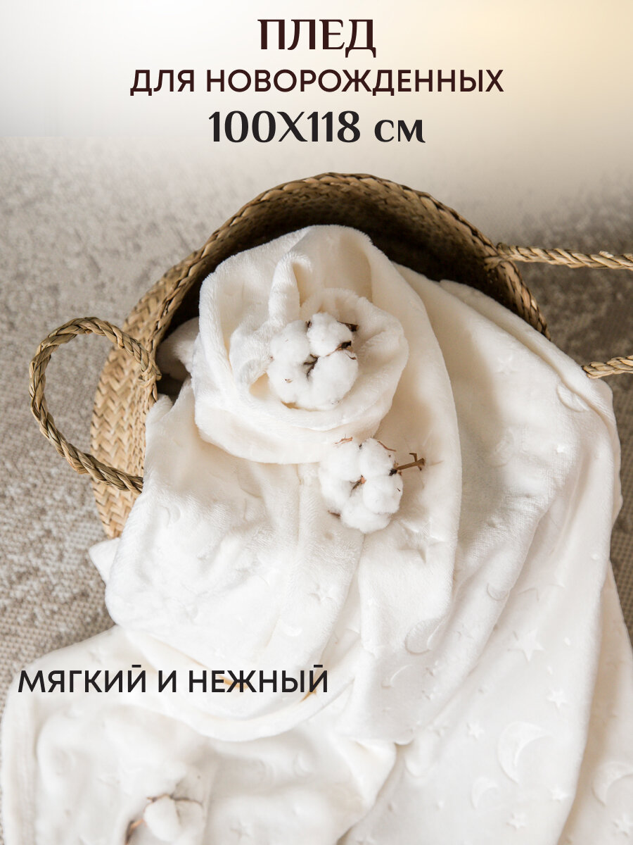 Плед для новорожденных малышей плюшевый, очень мягкий и нежный, подарит неповторимо нежные ощущения с первого прикосновения. Детский плед легкий, но при этом теплый, быстро согревает и хорошо удерживает тепло. Маленький пледик 100х118 см подойдет на выписку из роддома или в коляску как для мальчика, так и для девочки. Его удобно использовать в детскую кроватку как плюшевое одеялко или взять в дорогу и накрыть малыша в автолюльке. Плед имеет высокую износостойкость и долговечность, неприхотлив в уходе, быстро сохнет, сохраняет форму. Плед для детей белый однотонный несомненно станет удачной покупкой и хорошим подарком на рождение ребенка, на выписку из роддома, а так же на крещение. Плед с рисунком луны и звезды представлен в нескольких размерах. Плед в коляску 75х100 см; в детскую кроватку 100х140 см; плед на односпальную или 1.5 кровать 150х200 см. Текстиль от Российского производителя сертифицирован и абсолютно безопасен для чувствительной кожи малыша. Его оценят взрослые, подростки и дети!
