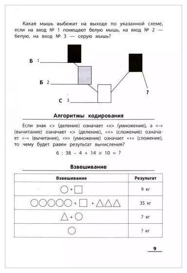 Книга очень интересная для 4 класса. Задачи как в олимпиадах. НО, в некоторых заданиях ошибки, например задание про строй насекомых, в первой части что-то напутали. Должен получиться паук, а получается ОКСА. Видимо слова расположены не с теми символами. Также задание про мышей на стр 8 не сходится с ответом.