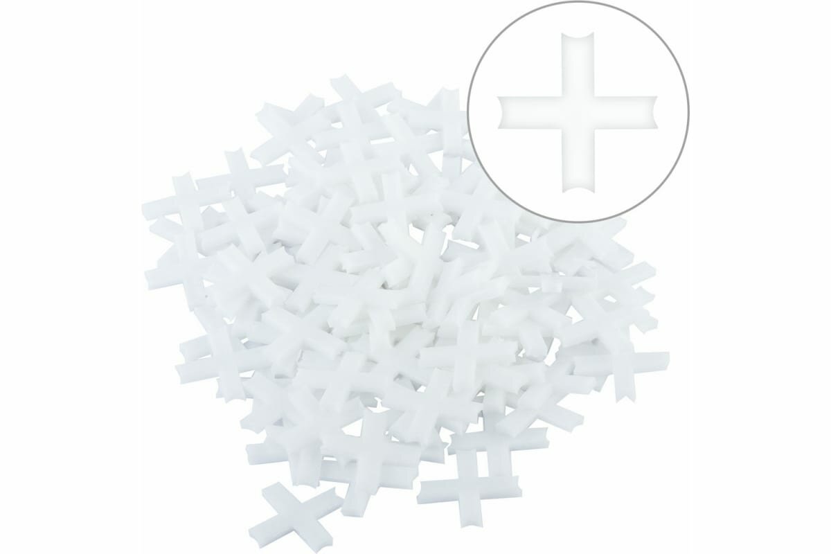 Преимущества: - Помогают выдержать одинаковые ширины швов. - Упрощают укладку плитки, керамогранита, кафеля. - Самая распространенная форма. - Подходит для укладки напольной и настенной плитки. описание: Крестики для плитки, керамогранита (кафеля) помогают выдержать одинаковое расстояние во время укладки, швы будут равными по ширине. Традиционные форма «крестик» самая распространенная. Этот вариант можно использовать, если при укладке кафеля (плитки) Вы не собираетесь создавать узоры и работать по сложным схемам со смещением. Каждый крестик образует строго прямой угол под 90 градусов. Также они используют, чтобы оставить небольшой зазор между стеной и полом в нижнем ряду плит или при отделке ступеней. Приспособления пользуются спросом не только у новичков, но и профессионалы тоже используют крестики в работе. Опыт и наметанный глаз в данном случае будет лишь преимуществом. Если класть плитку “на глазок”, велика вероятность, что она “поплывёт”, швы будут один больше другого, и общий рисунок будет кривым. Поэтому не стоит пренебрегать использованием такого аксессуара, а ещё лучше, если Вы будете соблюдать важные рекомендации. способ применения: Работа идёт по две плиты. Сначала кладутся первые плитки. Крестики вставляют по вертикали и по горизонтали на расстоянии около двух сантиметров от углов. Затем плиты сводятся до упора. После кладут ещё две плитки и повторяют процесс.рекомендации: Крестики из плитки на полу рекомендуется удалять только на следующий день. А из стеновых швов - можно уже через 2-3 часа. Слишком долго ждать тоже нельзя, так как промедление приведёт к том, что раствор наберет большую твердость и процесс удаления крестиков будет сложным.