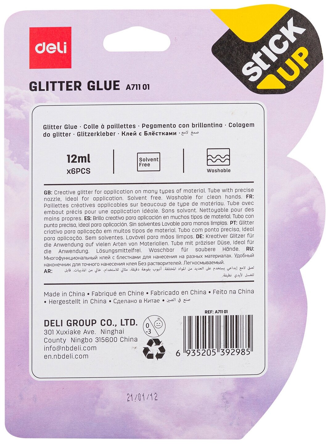 Клей-гель Deli 12мл блистер с блестками (упак.:6шт) Explora 12 шт./кор. EA71101
